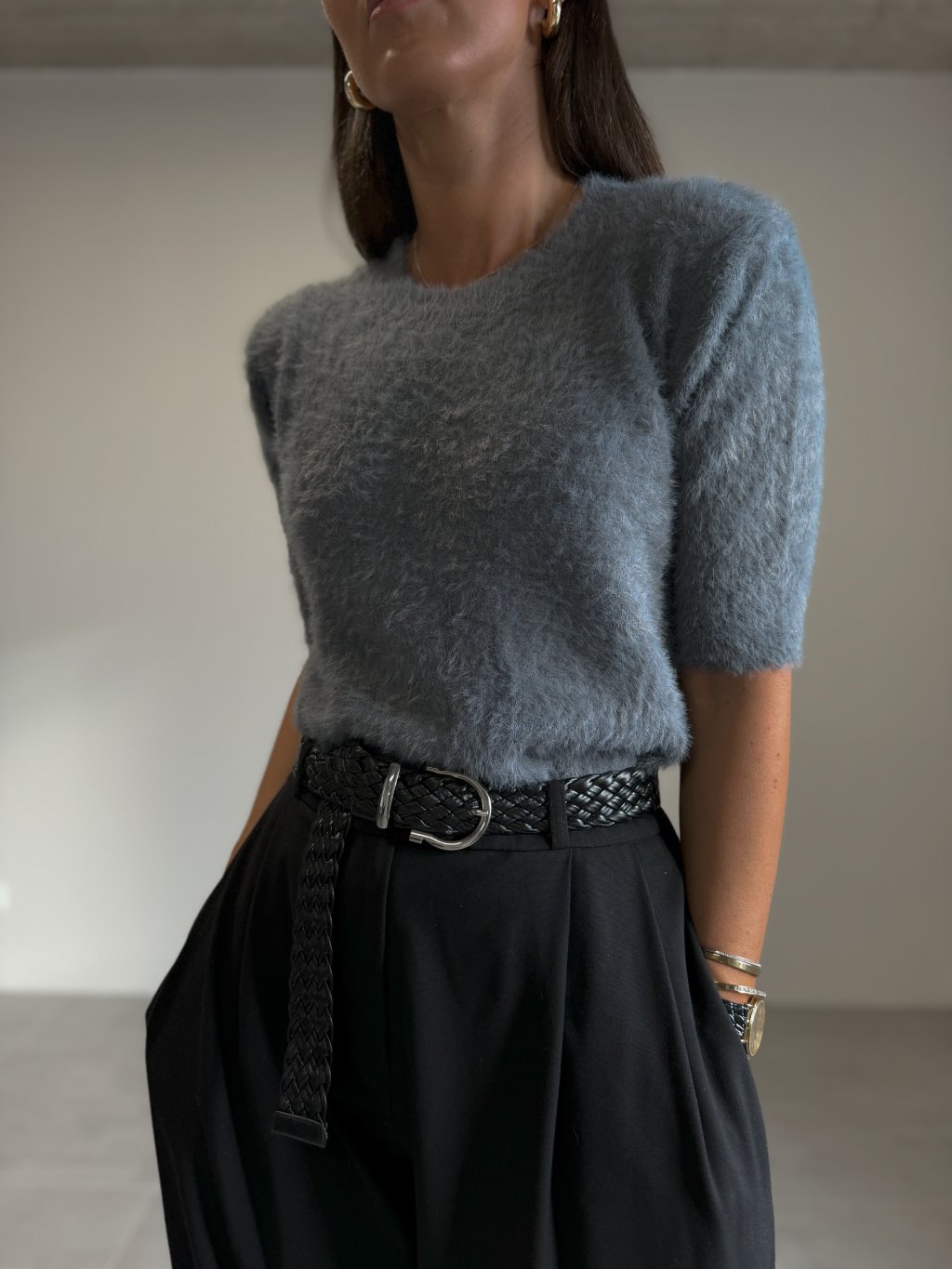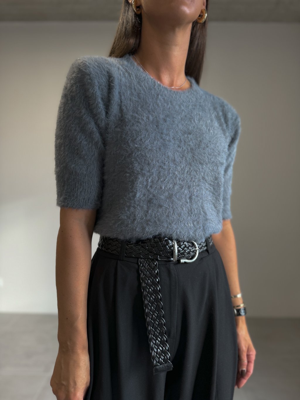 KOŽÍŠKOVÝ TOP S KRÁTKÝM RUKÁVEM grey