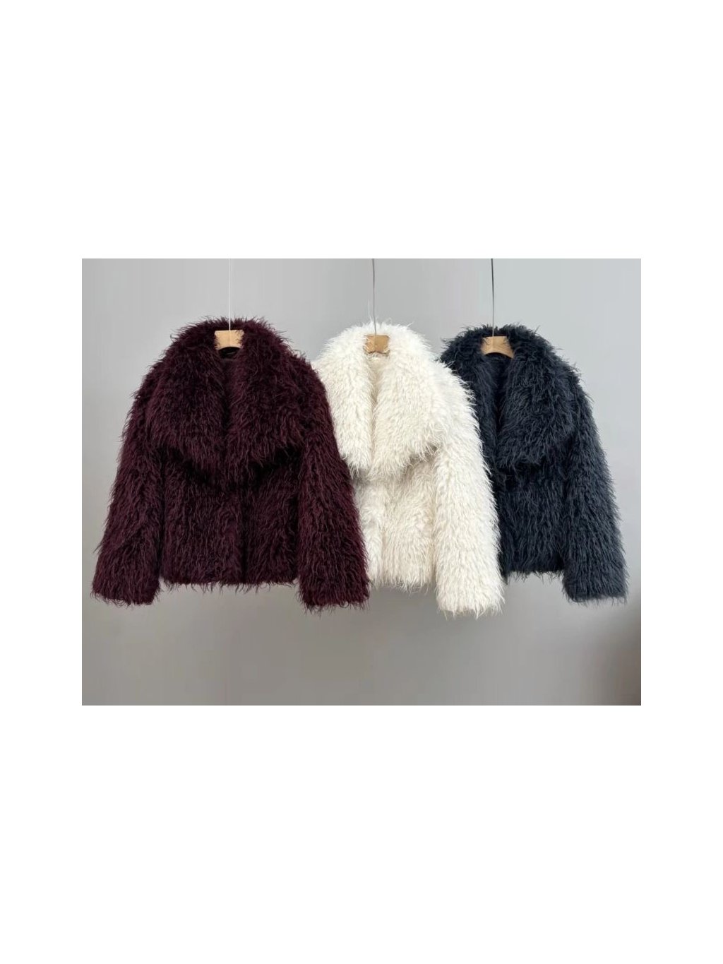 Krátký kožíšek s dlouhým hebkým chlupem. Límec, délka do pasu, zapínání na dva cvoky, podšívka, boční kapsy.