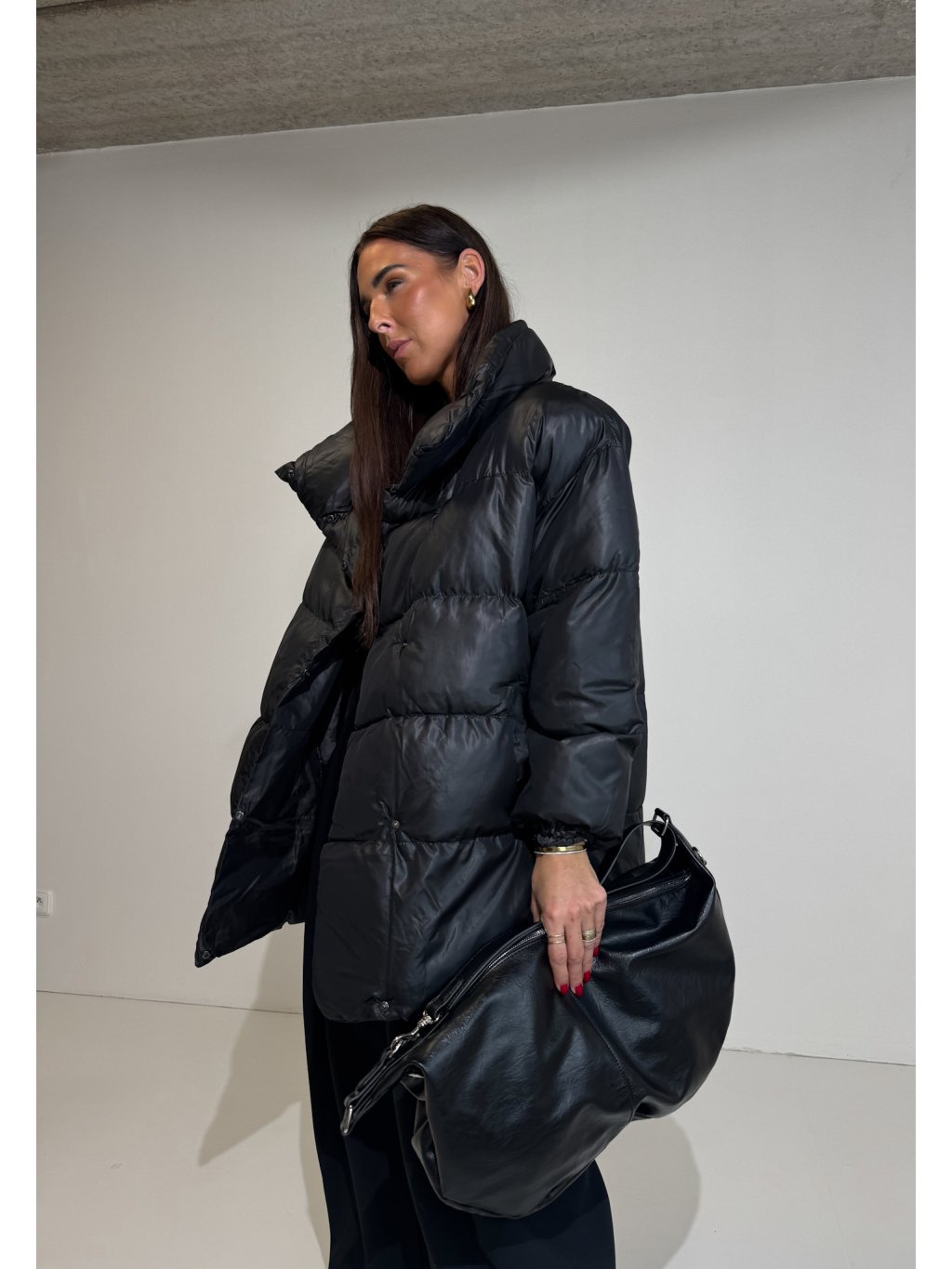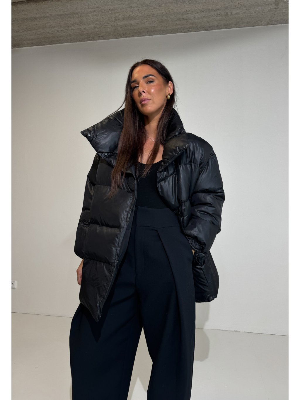LESKLÁ PUFF BUNDA S LÍMCEM black