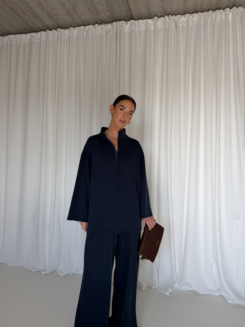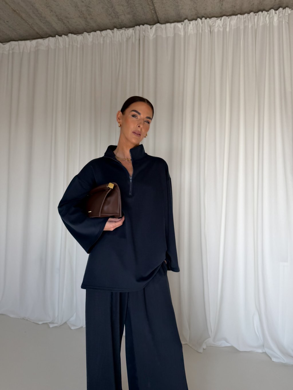 Halenka volného střihu, 3/4 rukávy, límeček do stojáčku se zapínáním na zip v bordo barvě.