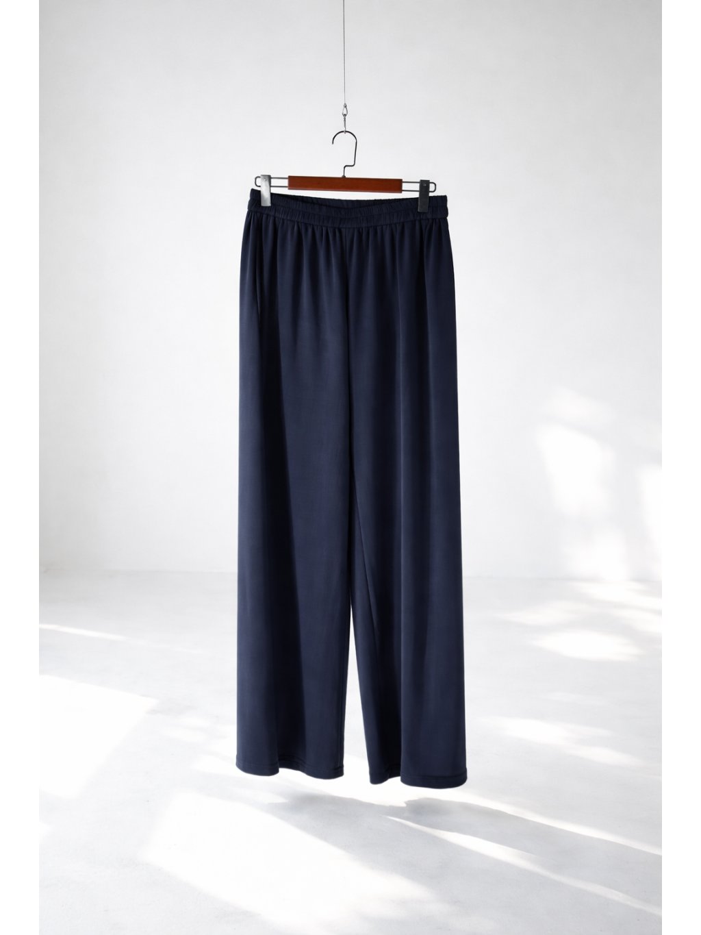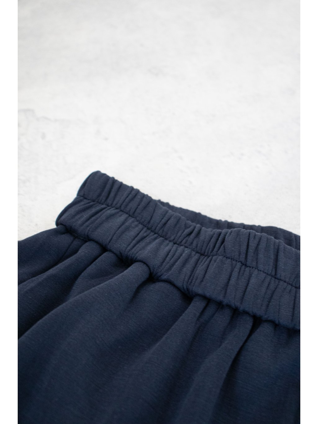Kalhoty se širokými nohavicemi, v pase na gumu, boční kapsy.