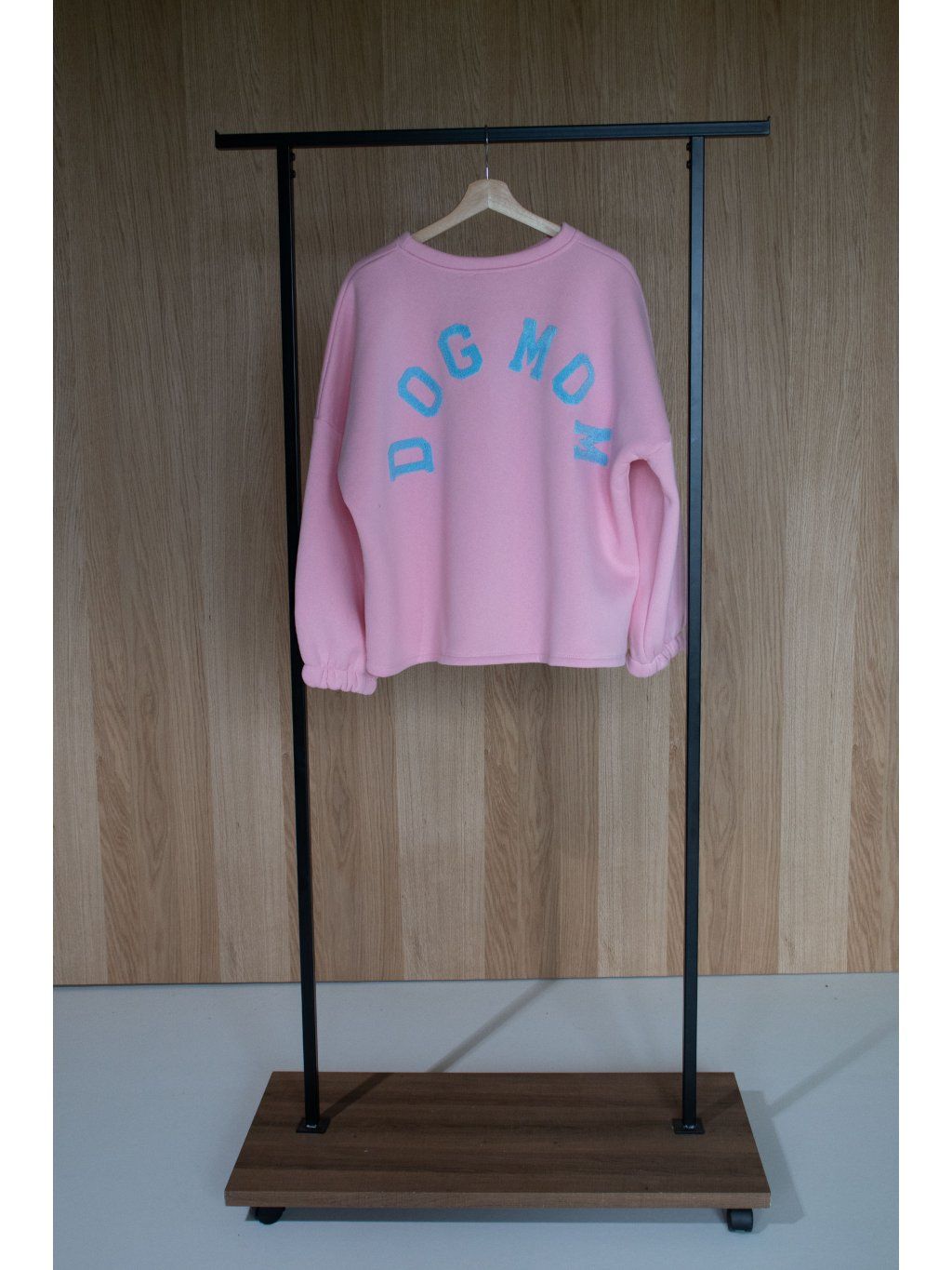 Mikina s dlouhým rukávem ukončeným do gumičky, oversized střih, mírně kulatý výstřih, na zádech vyšitý nápis " DOG MOM " . Mikina se však dá nosit i obráceně tedy s nápisem vpředu.