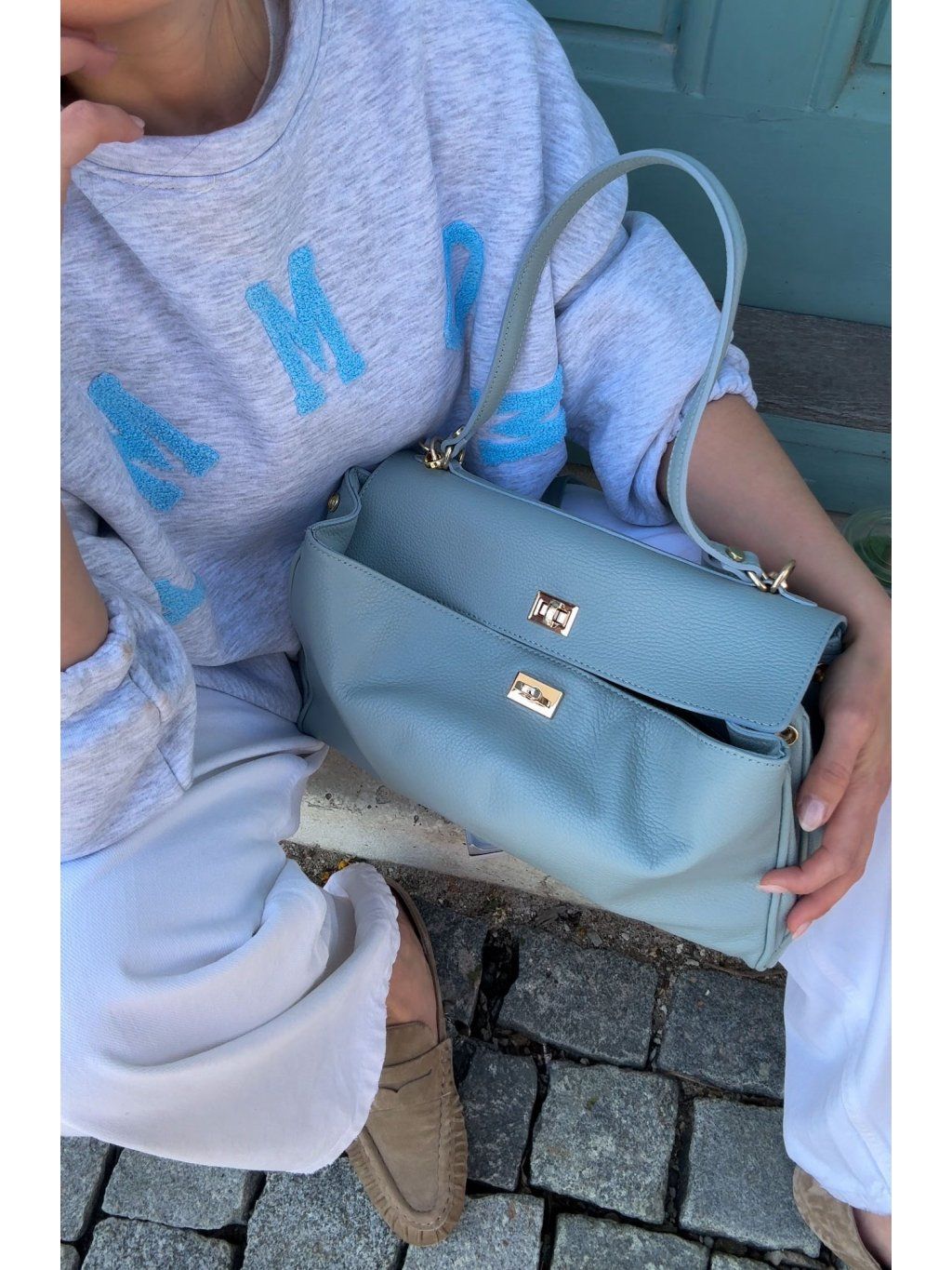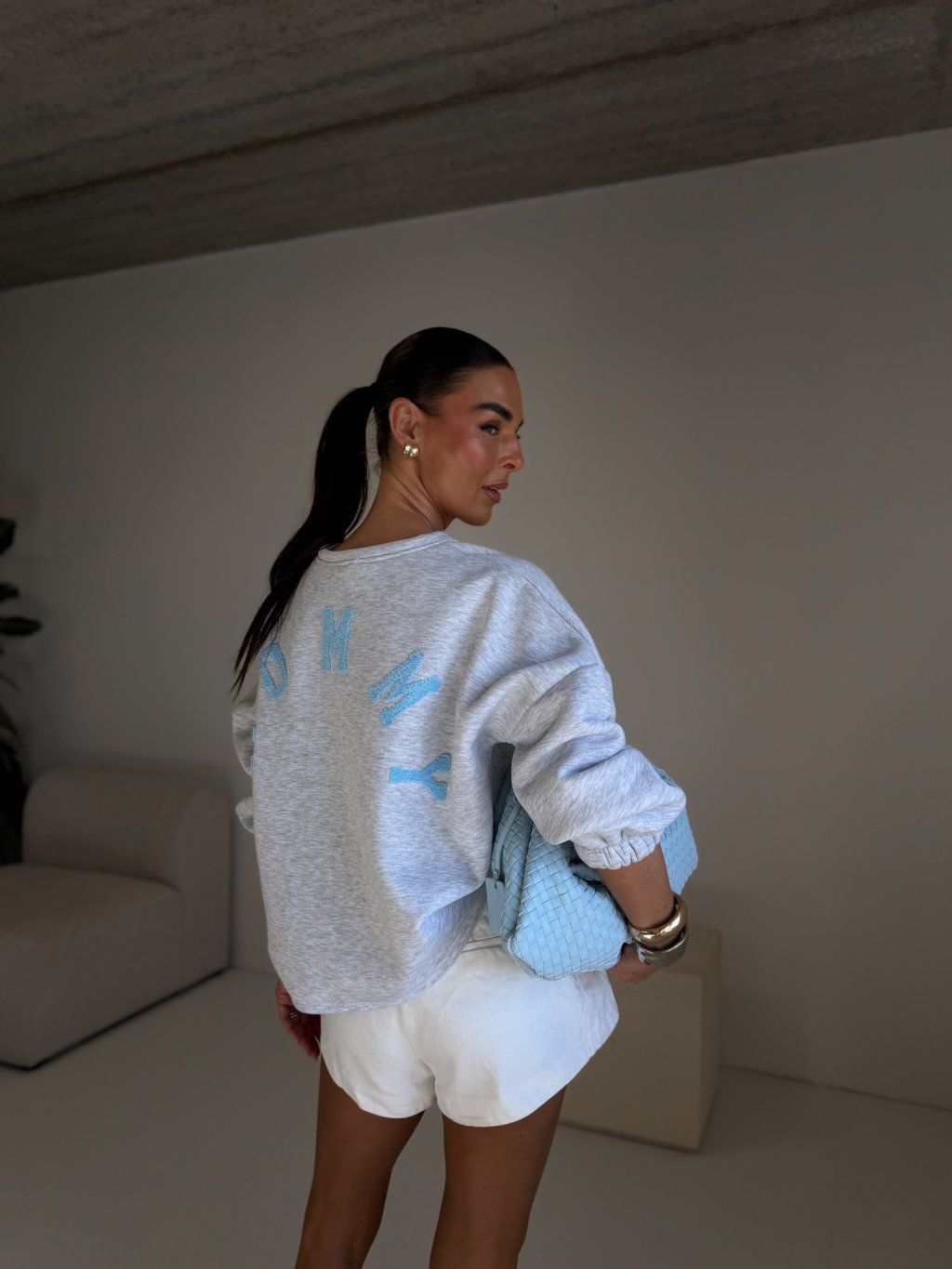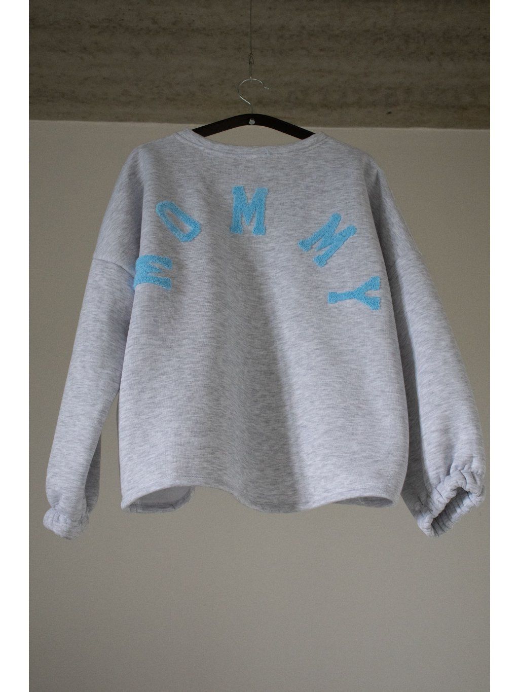 Mikina s dlouhým rukávem ukončeným do gumičky, oversized střih, mírně kulatý výstřih, na zádech vyšitý nápis " MOMMY " . Mikina se však dá nosit i obráceně tedy s nápisem vpředu.