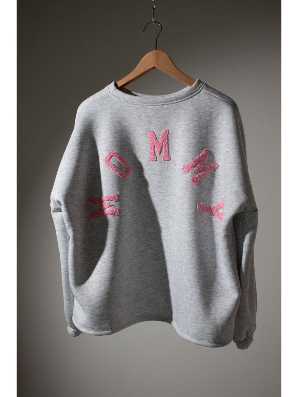 Mikina s dlouhým rukávem ukončeným do gumičky, oversized střih, mírně kulatý výstřih, na zádech vyšitý nápis " MOMMY " . Mikina se však dá nosit i obráceně tedy s nápisem vpředu.