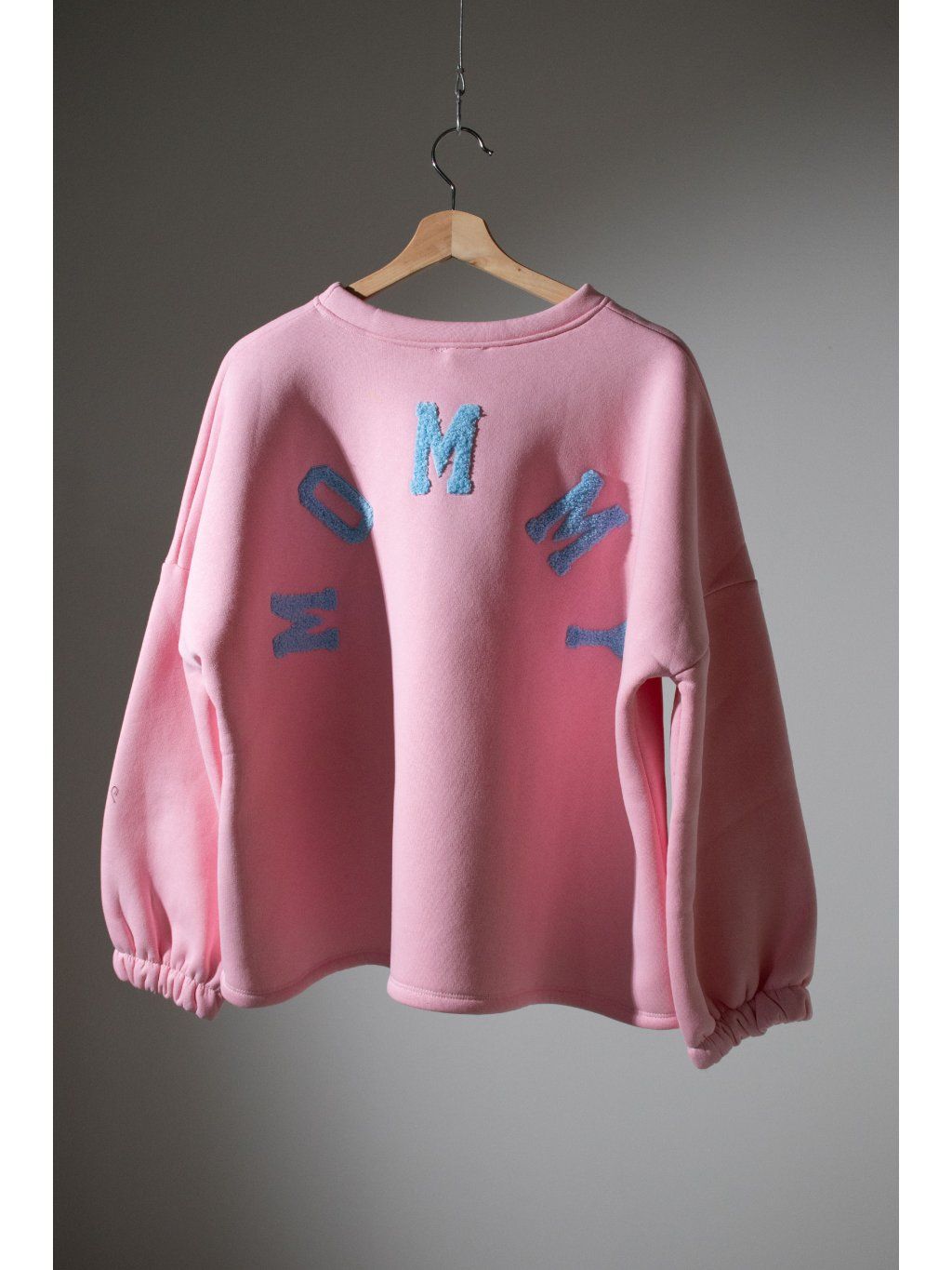 Mikina s dlouhým rukávem ukončeným do gumičky, oversized střih, mírně kulatý výstřih, na zádech vyšitý nápis " MOMMY " . Mikina se však dá nosit i obráceně tedy s nápisem vpředu.