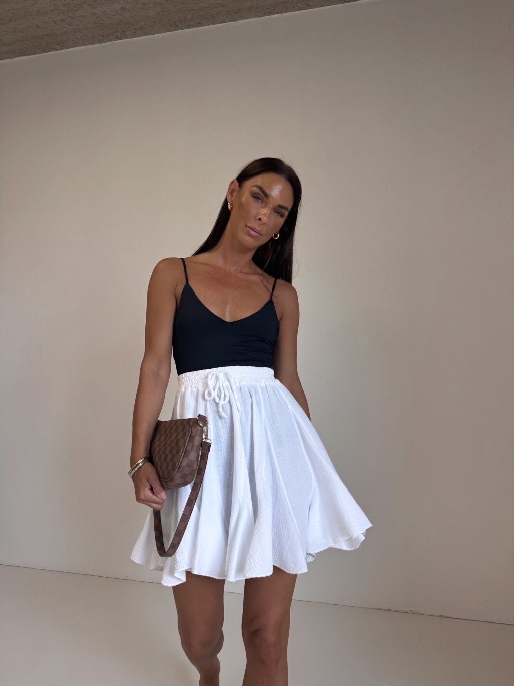 MUŠELÍNOVÁ KOLOVÁ SUKNĚ white