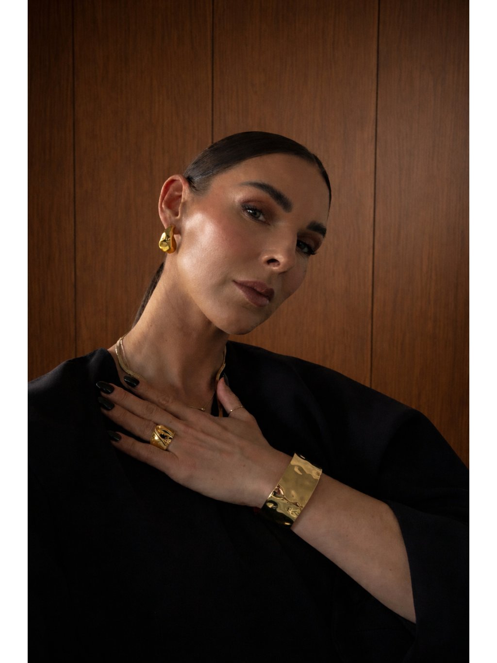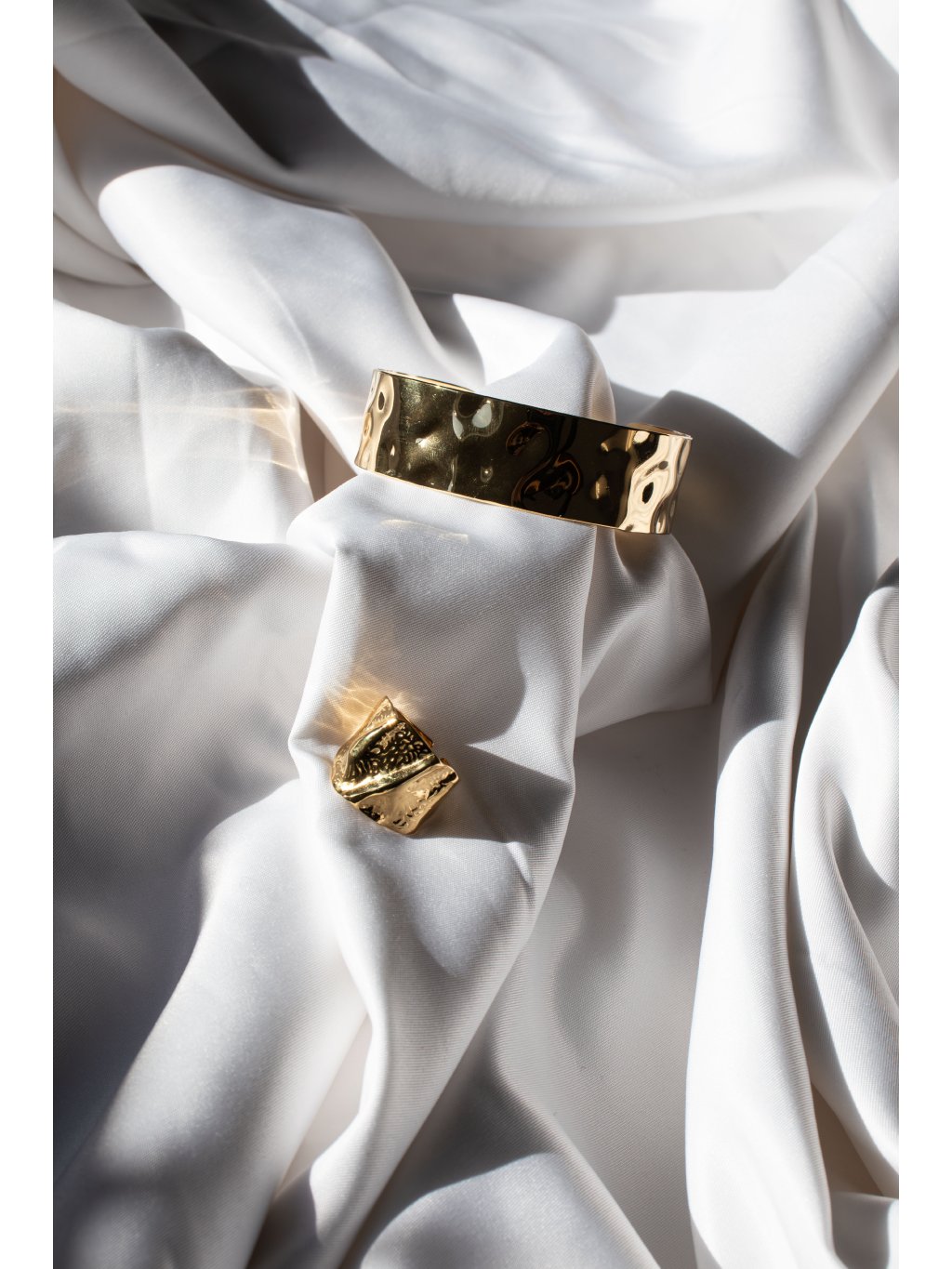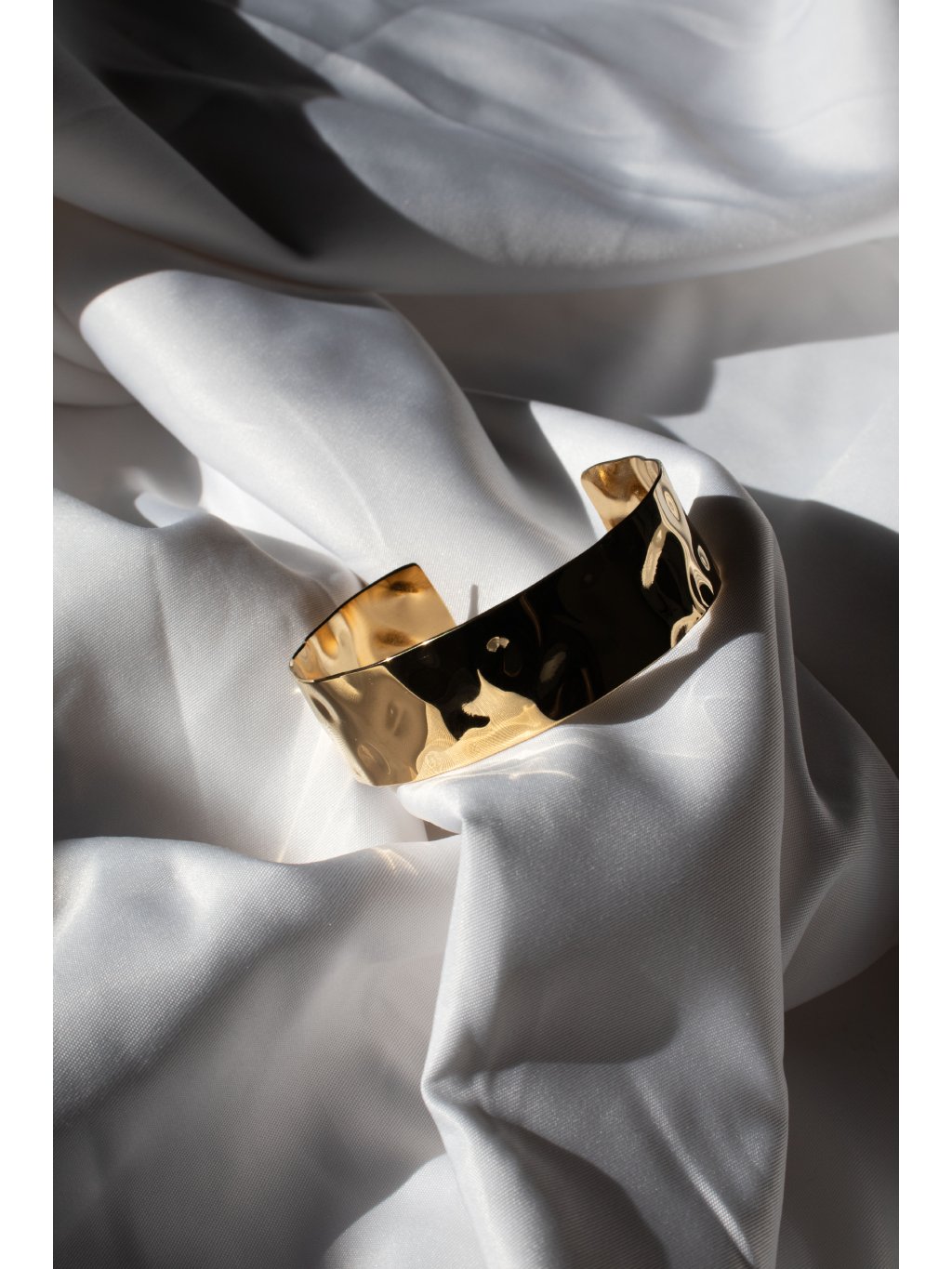 Otevřený kovový náramek tepaného vzhledu. Lze kombinovat se dvěma typy tepaných prstenů i náušnicemi - viz související produkty.