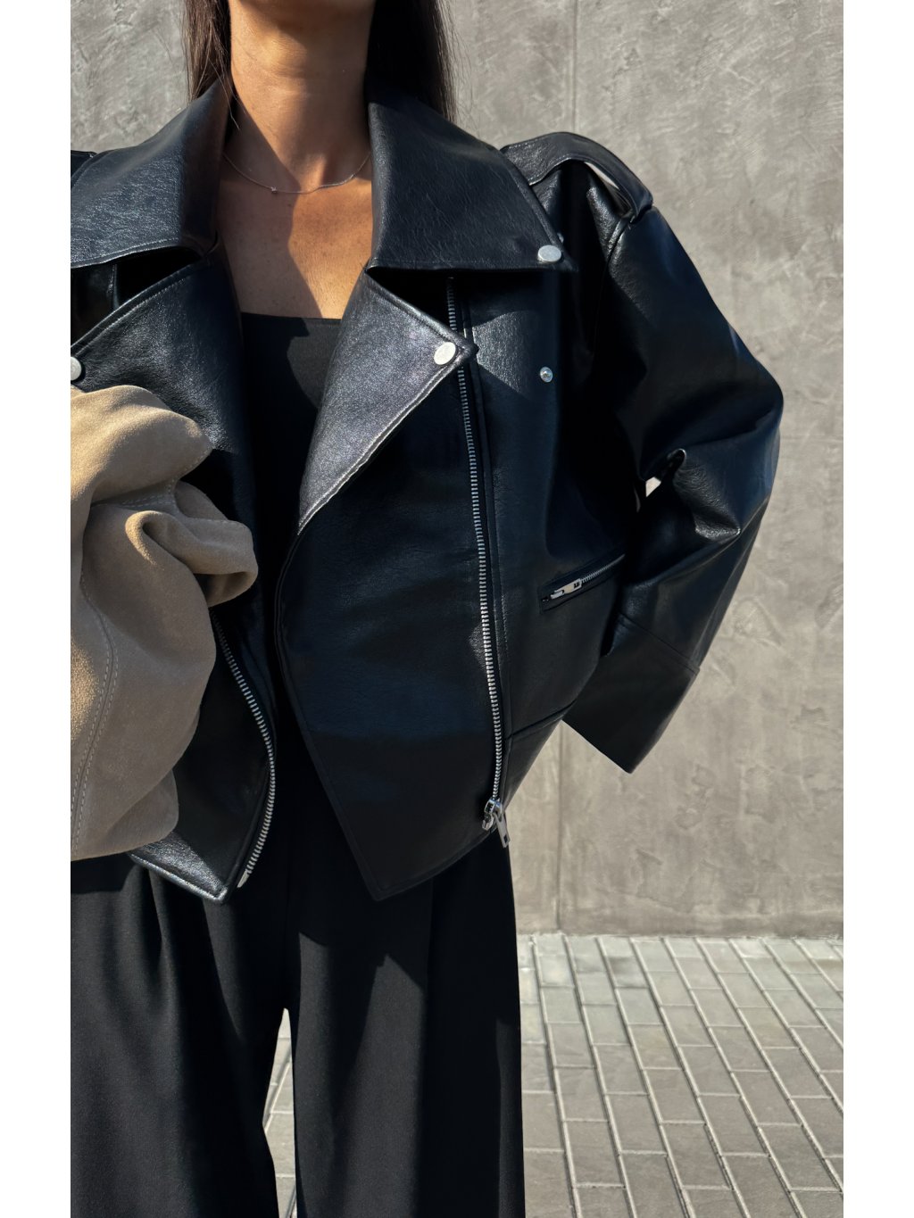 OVERSIZED KOŽENKOVÝ KŘIVÁK black