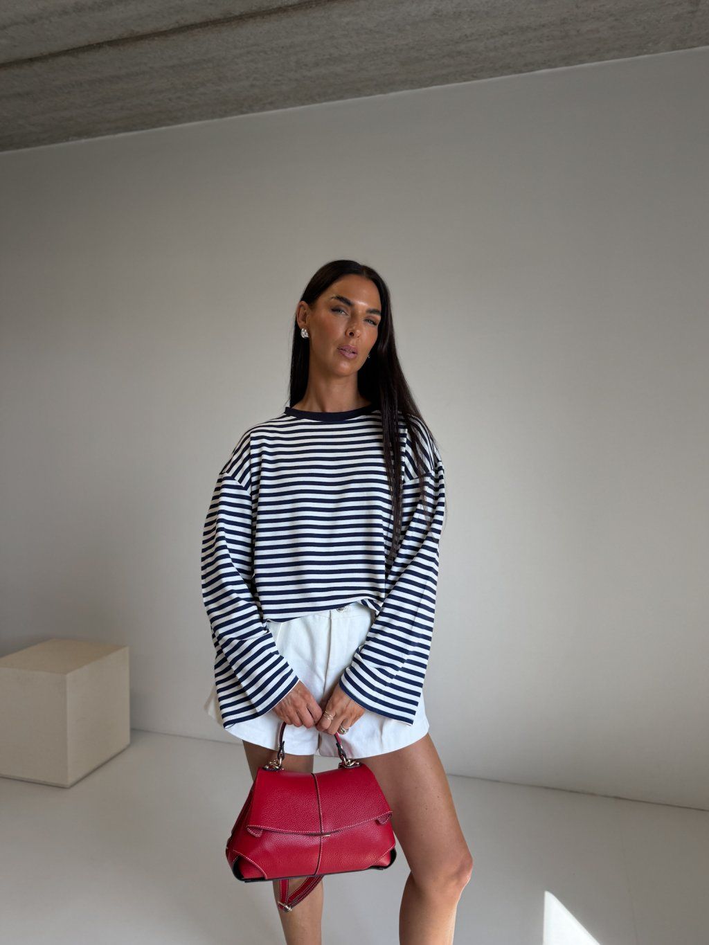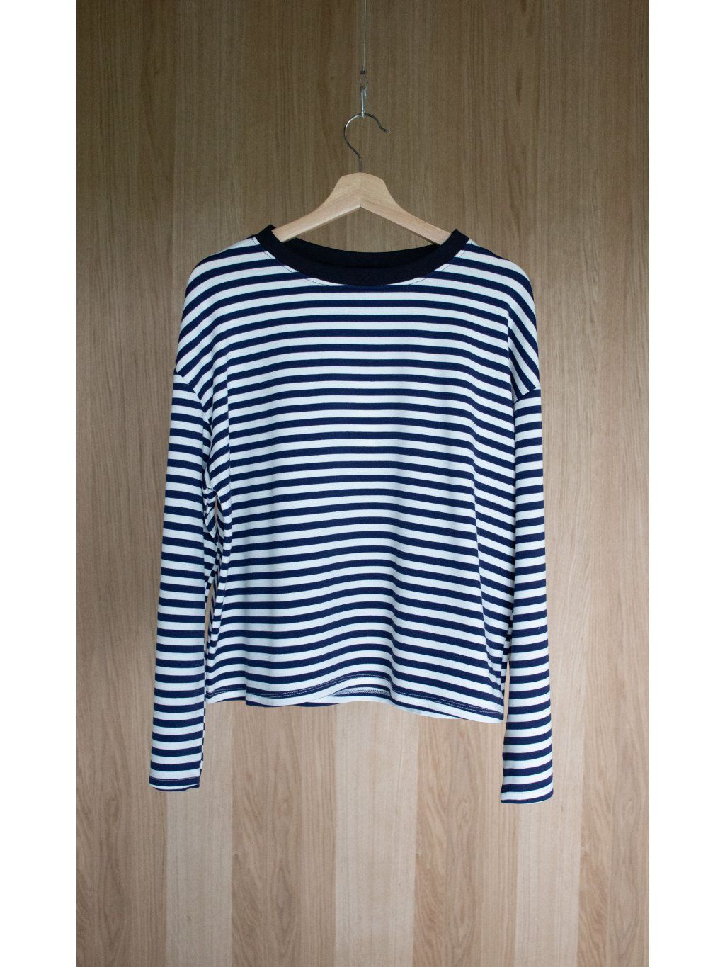 PRUHOVANÉ TRIKO S DLOUHÝM RUKÁVEM navy/white