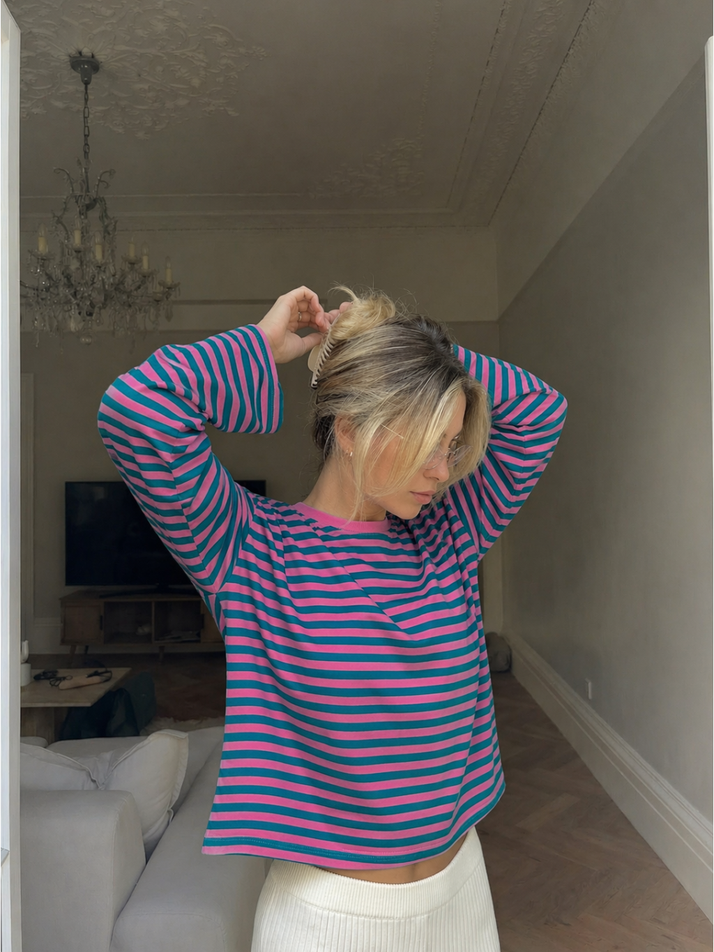 PRUHOVANÉ TRIKO S DLOUHÝM RUKÁVEM turquoise/pink