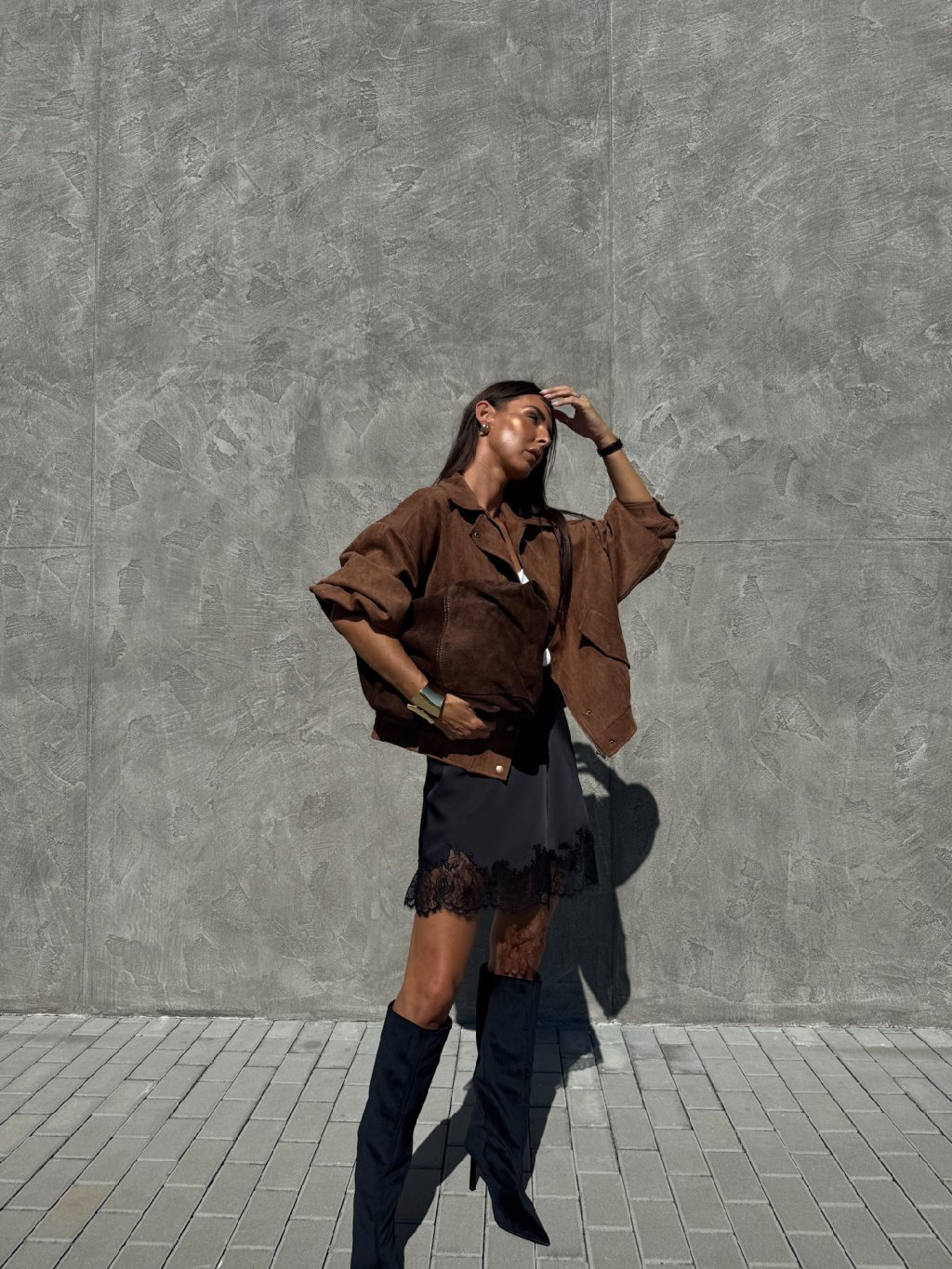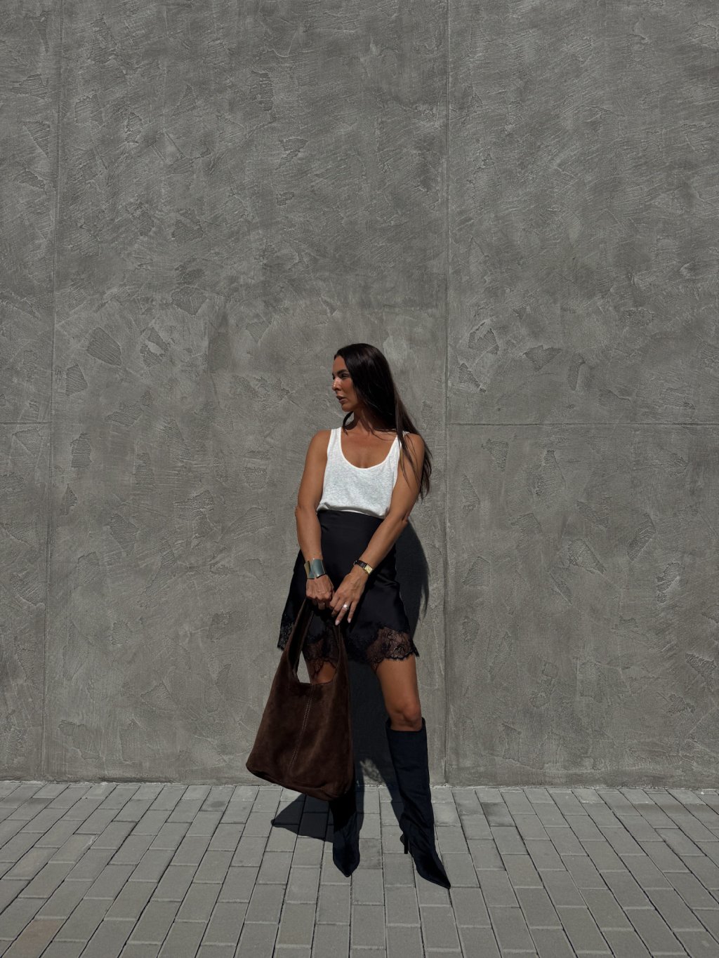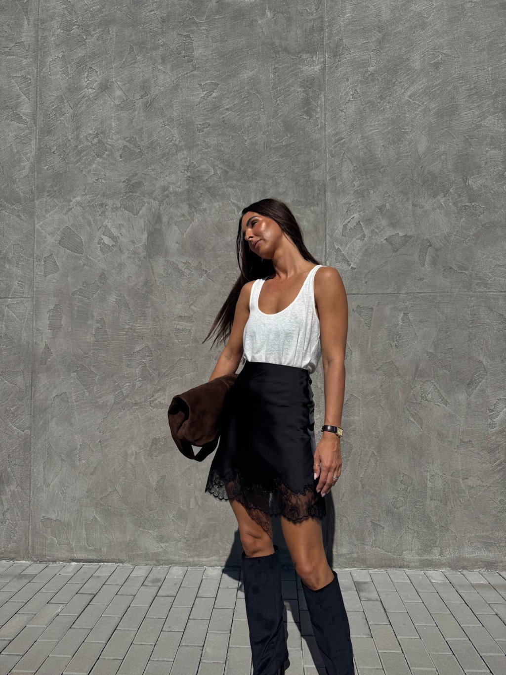 SATÉNOVÁ SUKNĚ S KRAJKOU black
