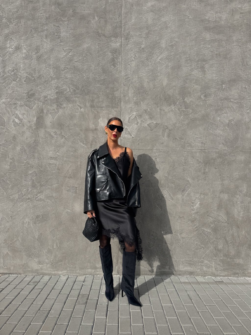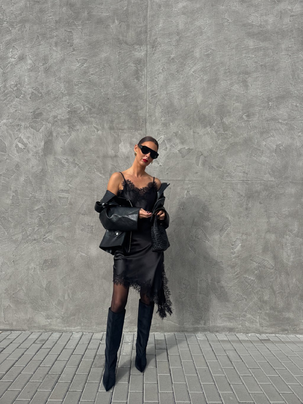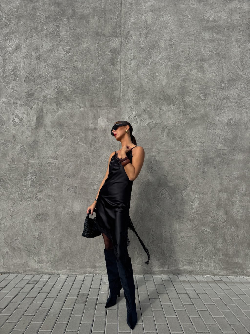 SATÉNOVÉ ŠATY S KRAJKOU black