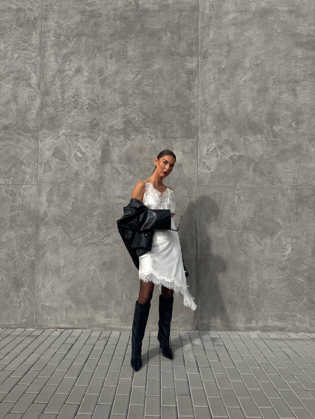 SATÉNOVÉ ŠATY S KRAJKOU champagne
