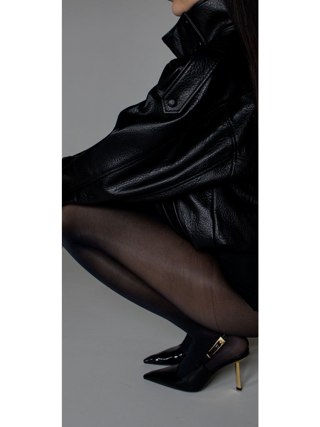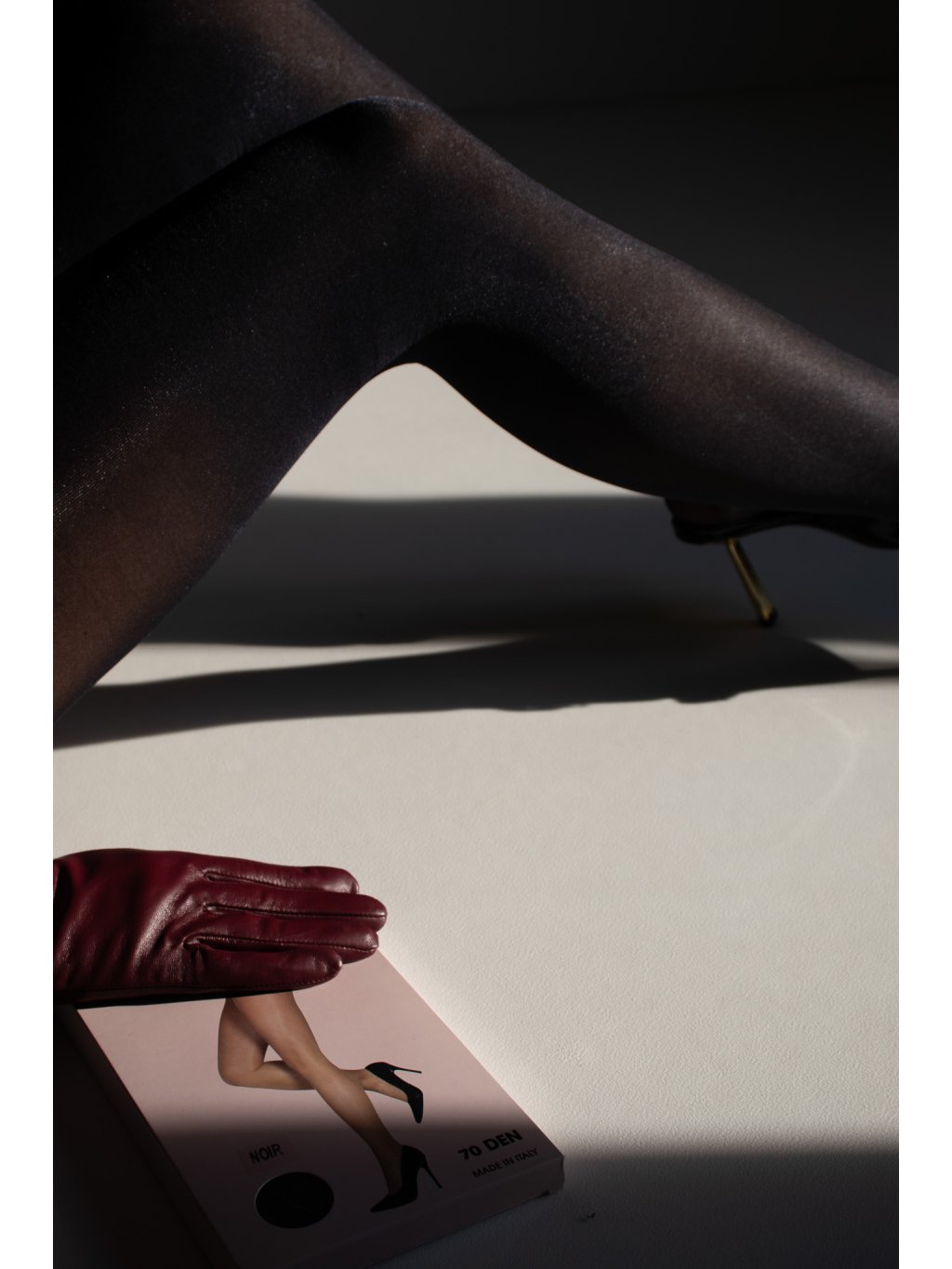 Neprůsvitné silonky z pevnějšího materiálu. Hřejivé, vhodné na podzim a zimu. DENsity 70.