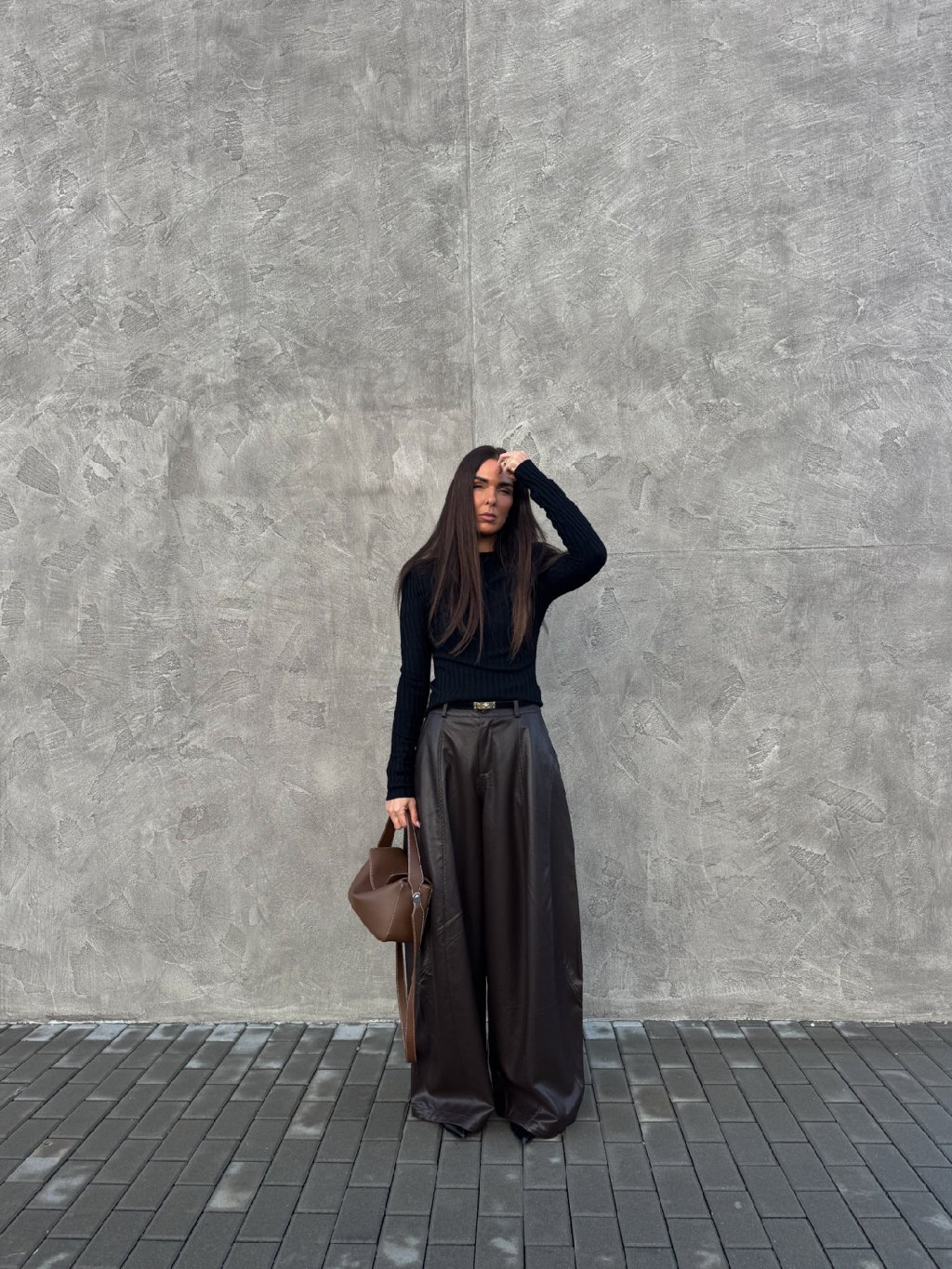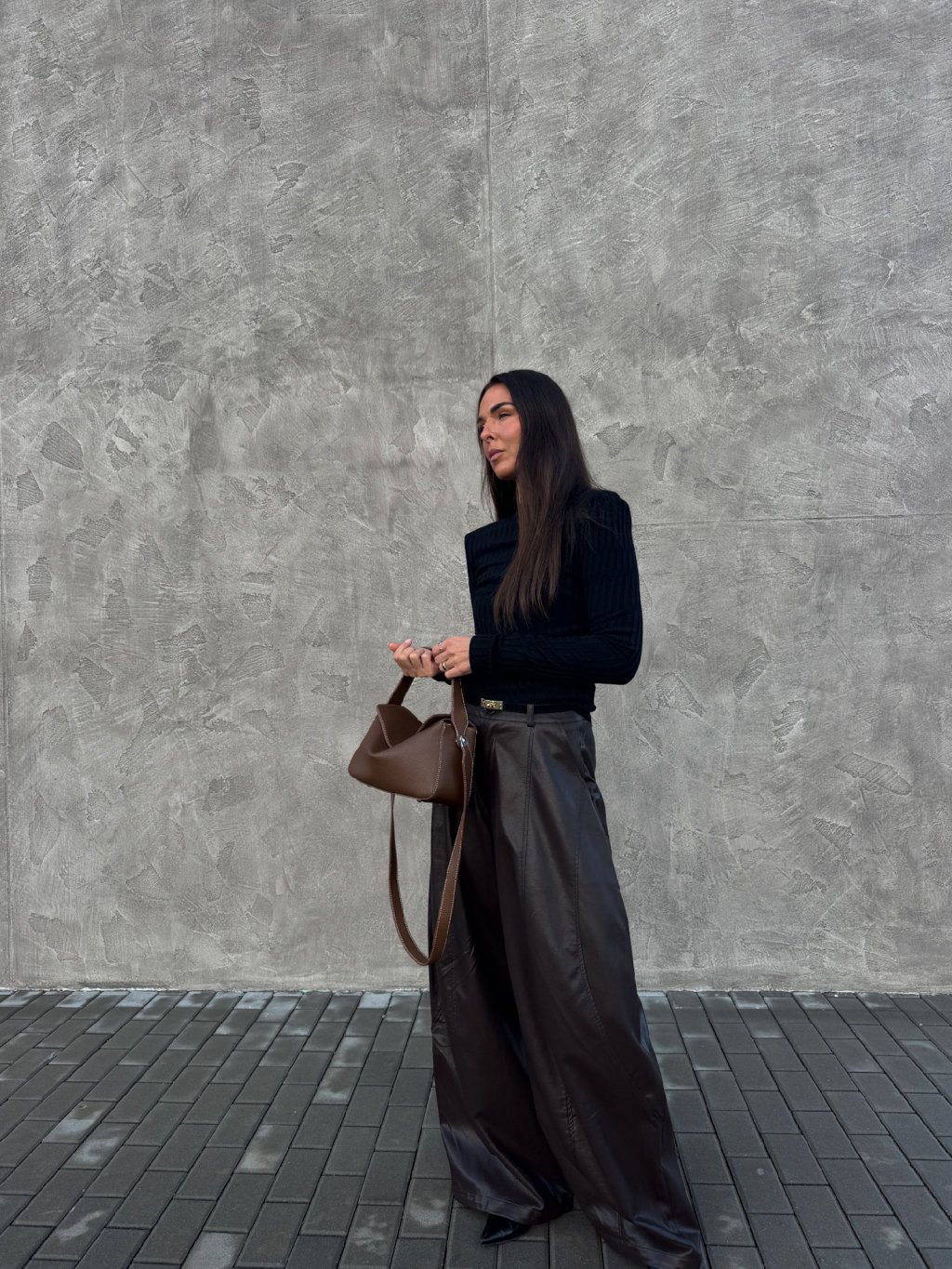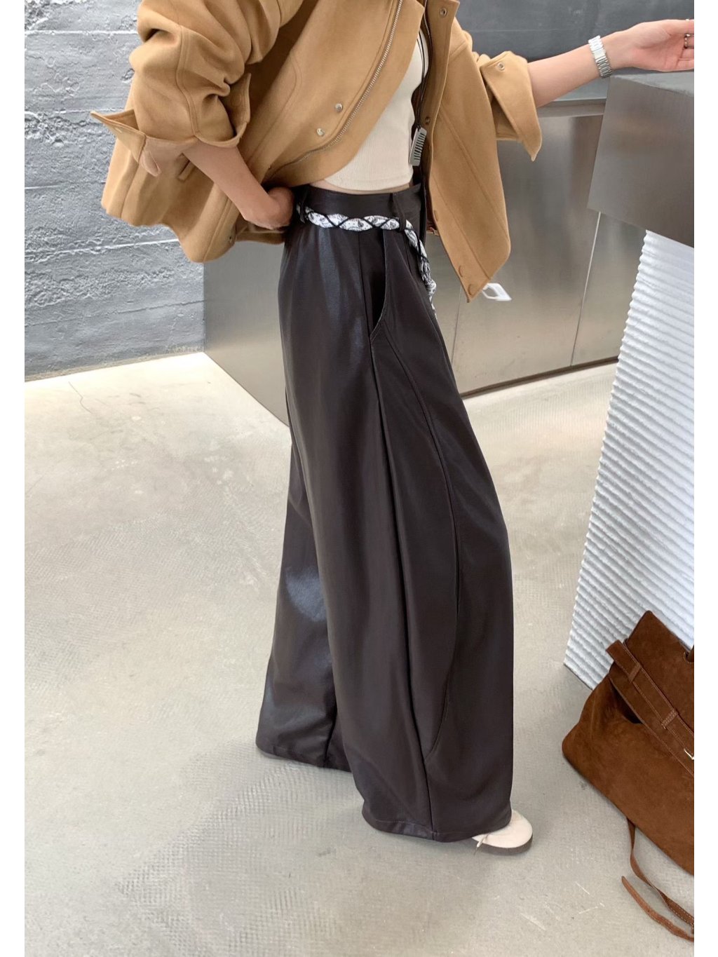 ŠIROKÉ KOŽENKOVÉ KALHOTY brown