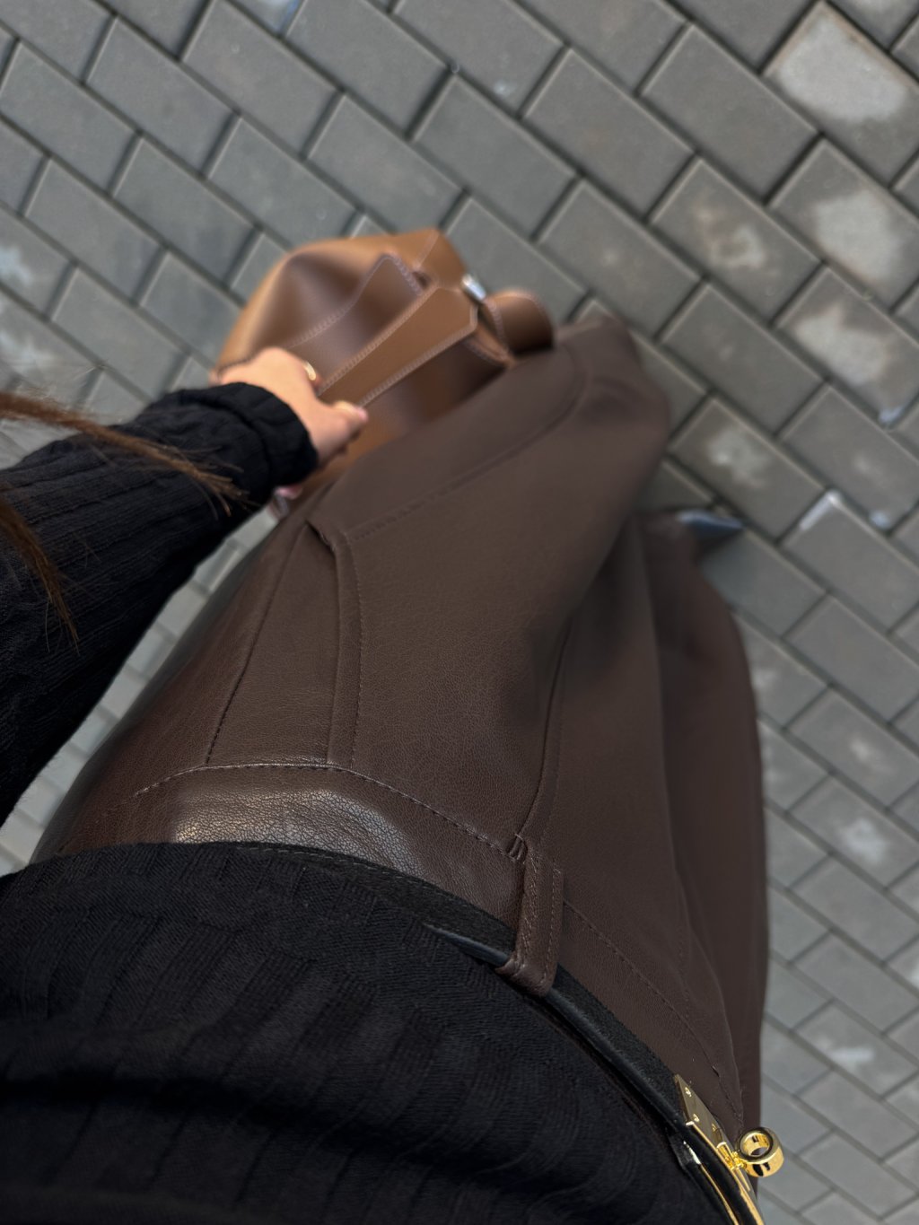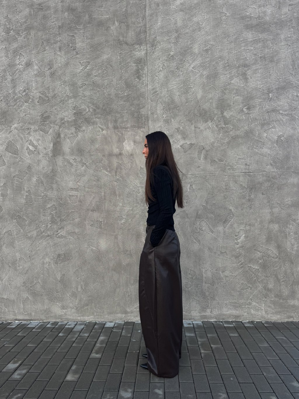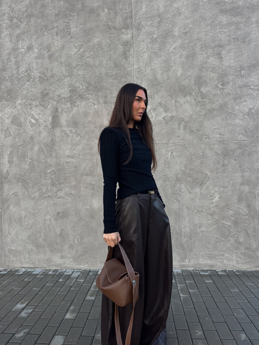 ŠIROKÉ KOŽENKOVÉ KALHOTY brown