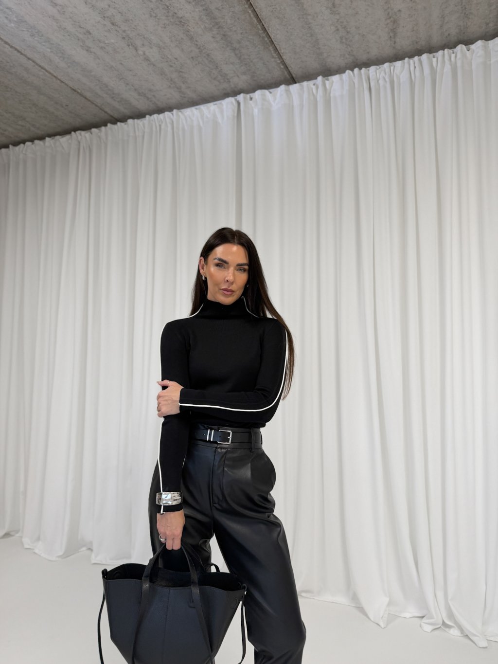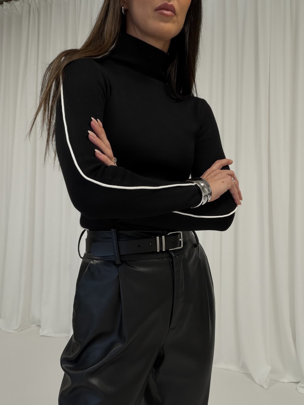 Slim rolák, hladký pružný materiál, zdobený bílým lemem.