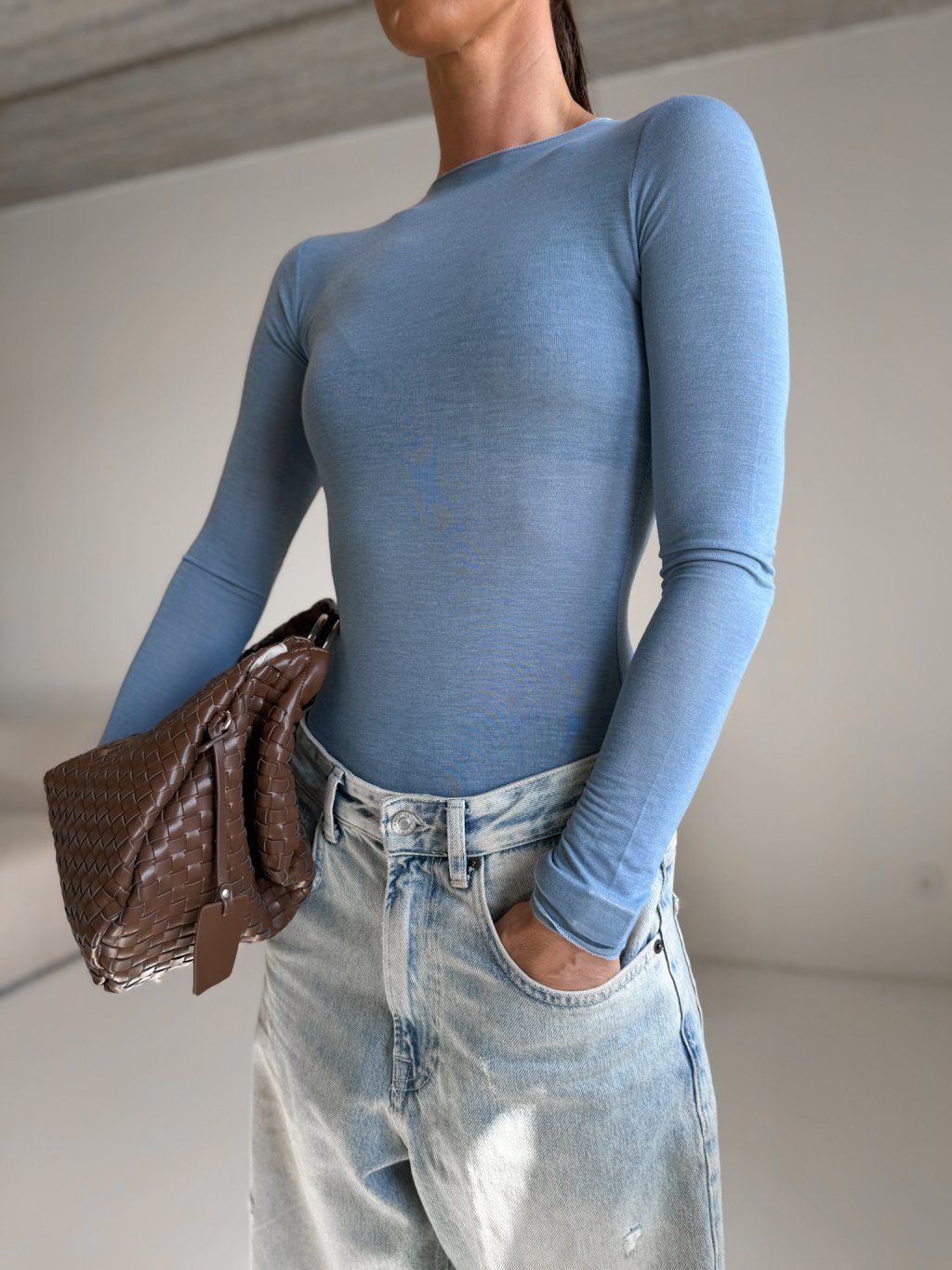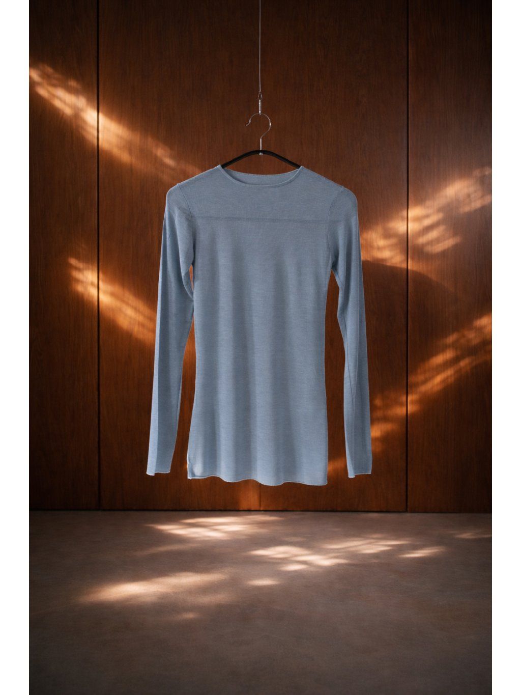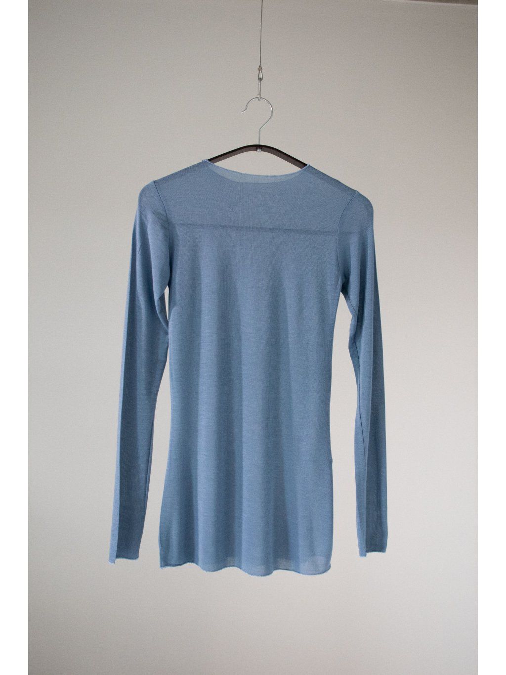 Lehké triko s dlouhým rukávem, pružné, příjemné, mírně prosvítá. Přírodní materiál s elastanem a podílem kašmíru.