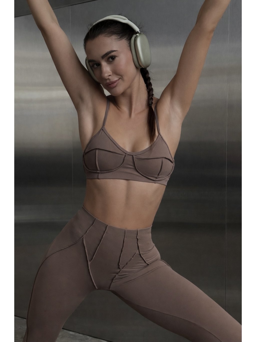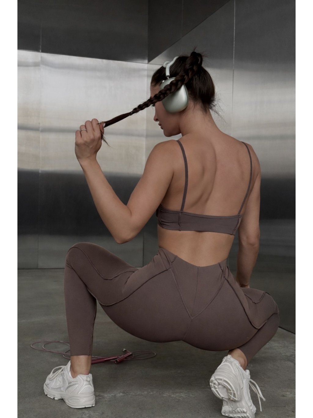 Sportovní komplet...podprsenka + legíny, přiznané obrácené švy. Podprsenka má posuvná ramínka, legíny mají vysoký pas.