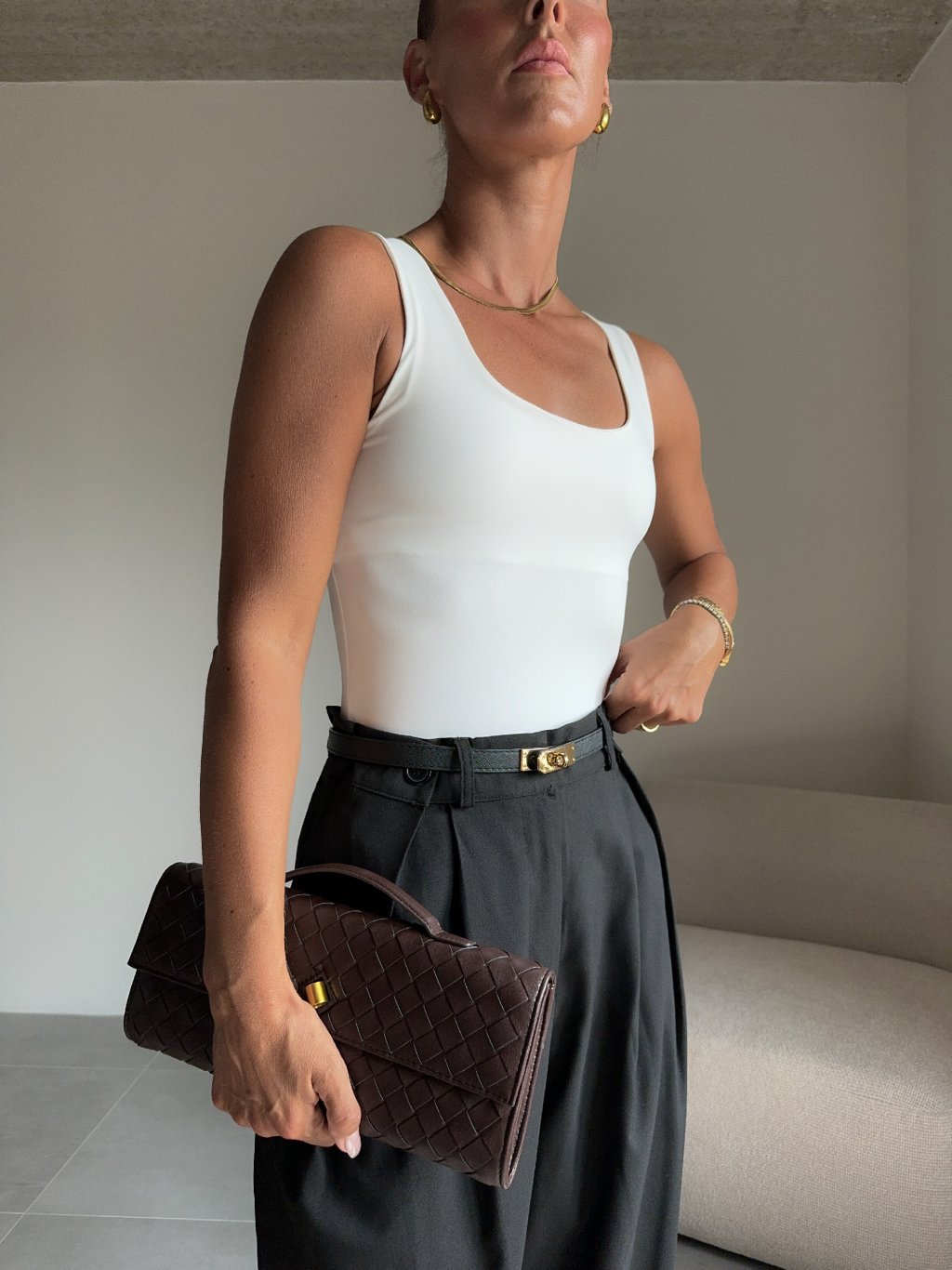 Stretchový hladký nátělník, široká ramínka, hranatý výstřih, dvojité podšití.