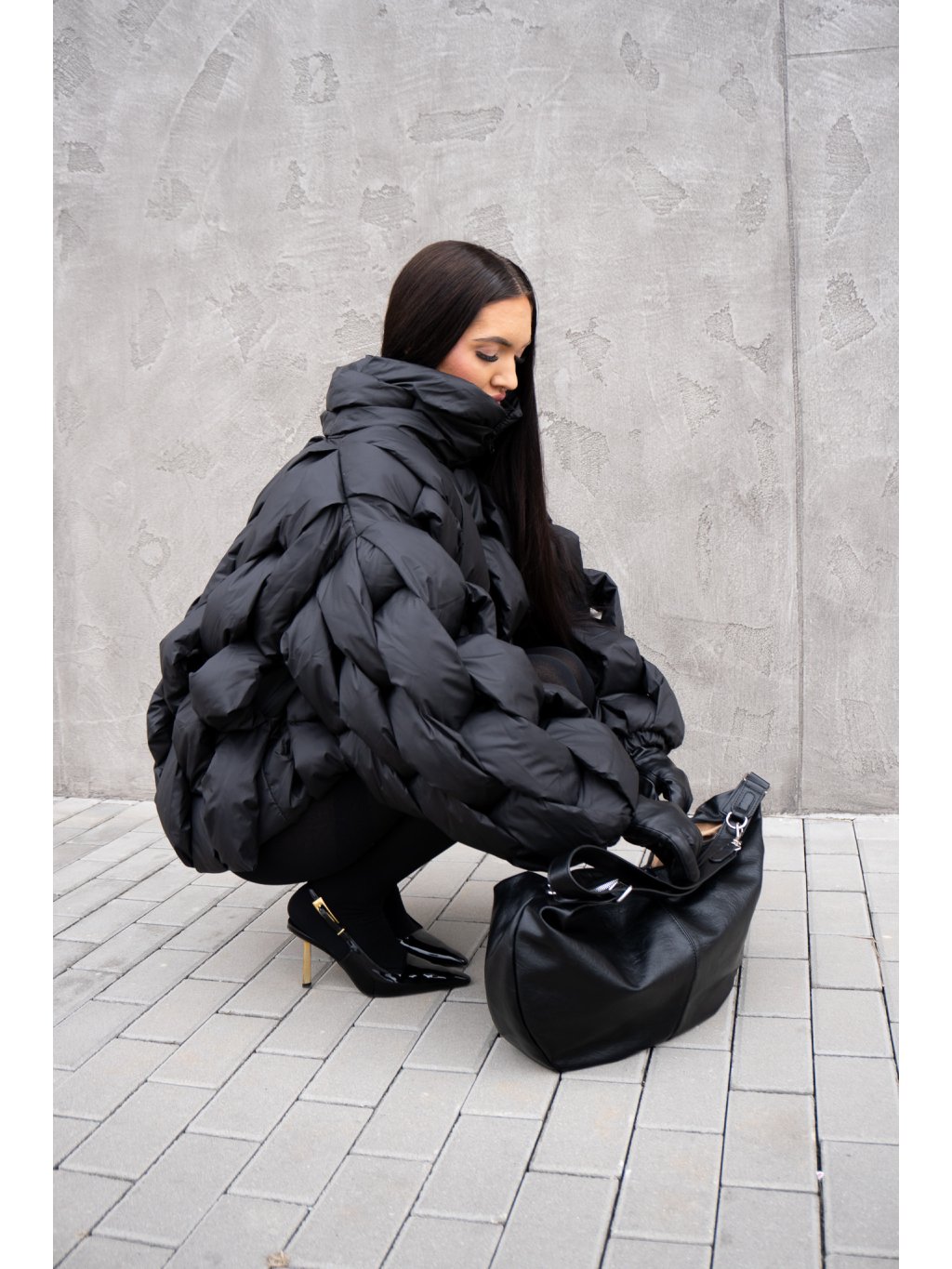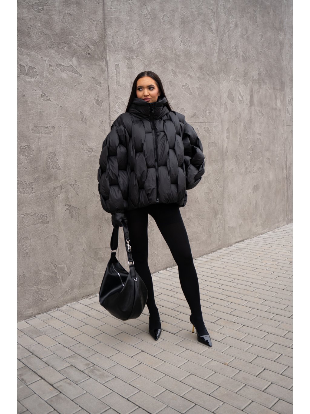 STRUKTUROVANÁ PUFF BUNDA black