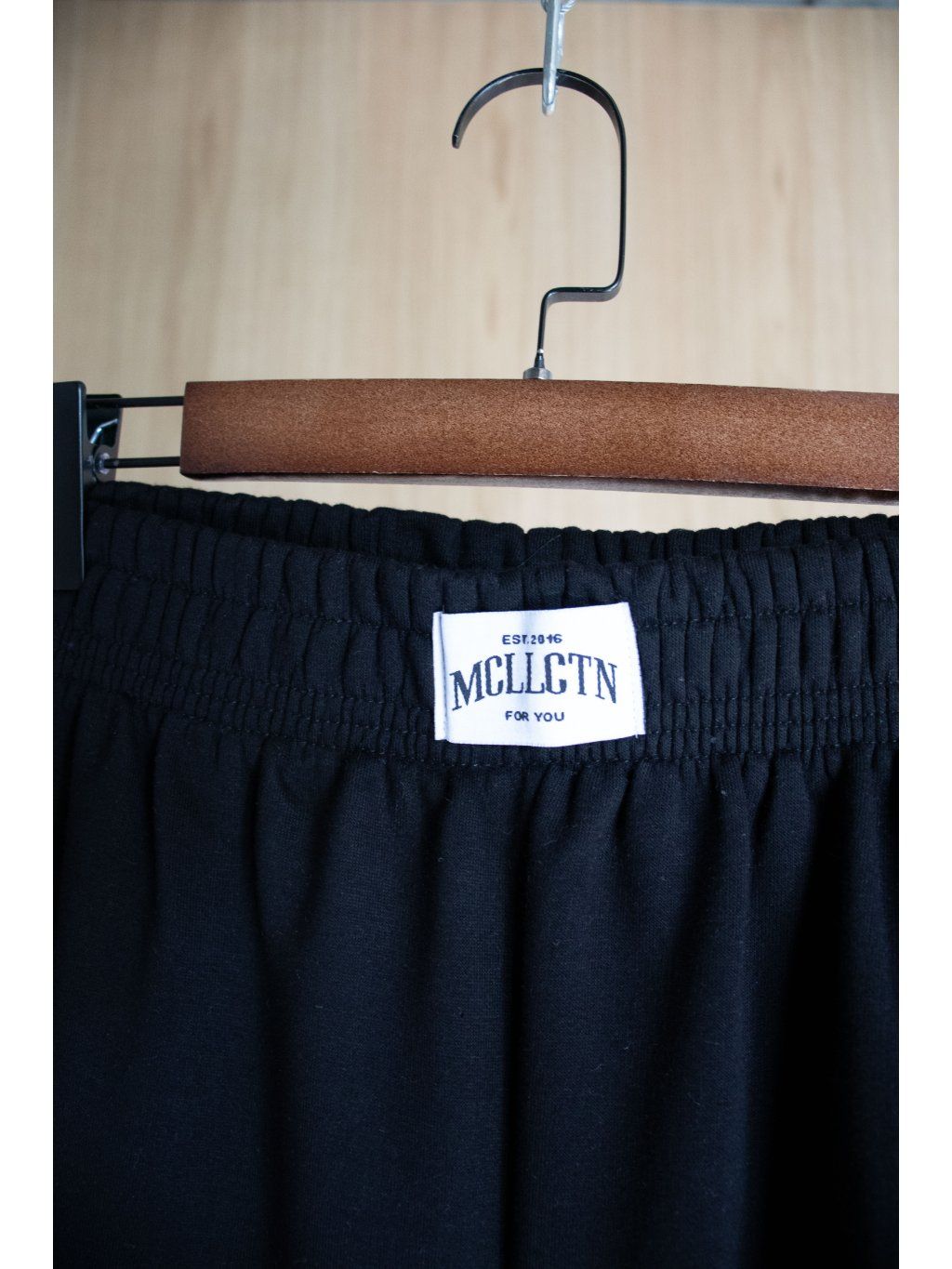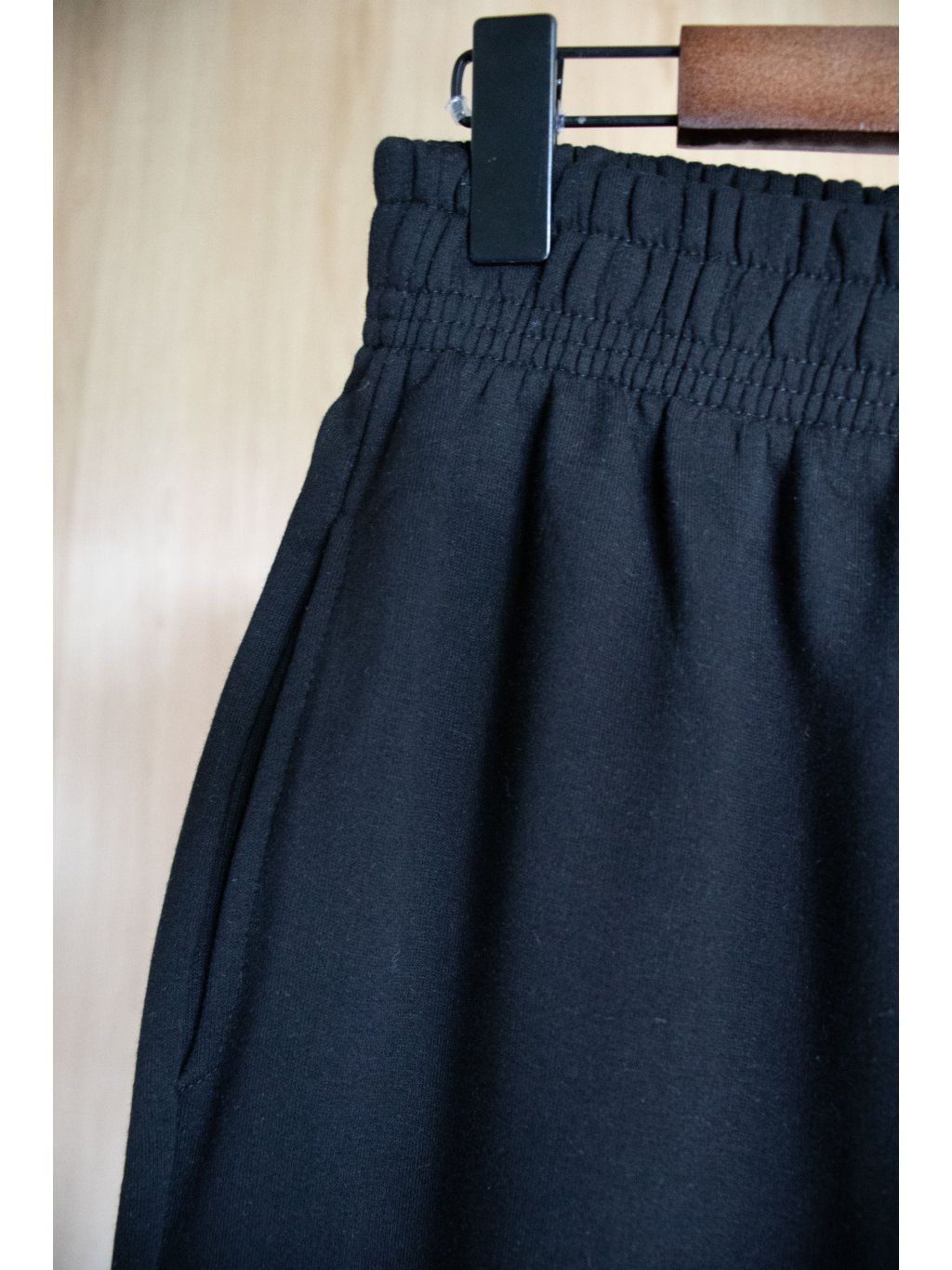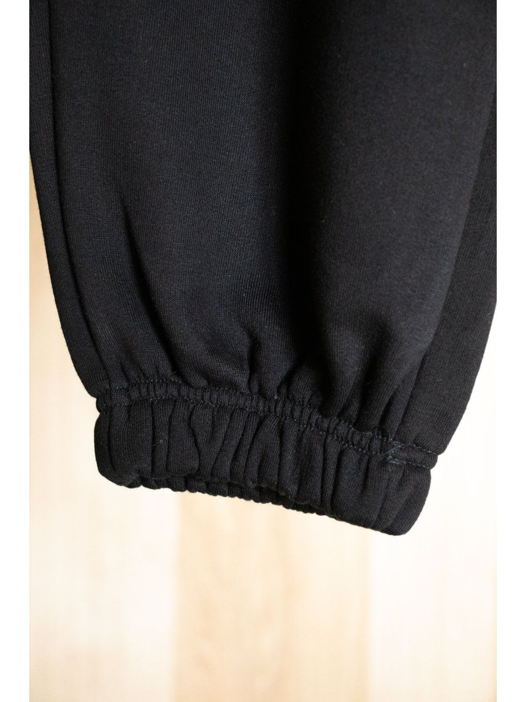 Tepláky v pase na gumu, na levé noze nápis, zakončené též na gumu.