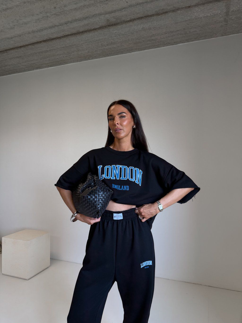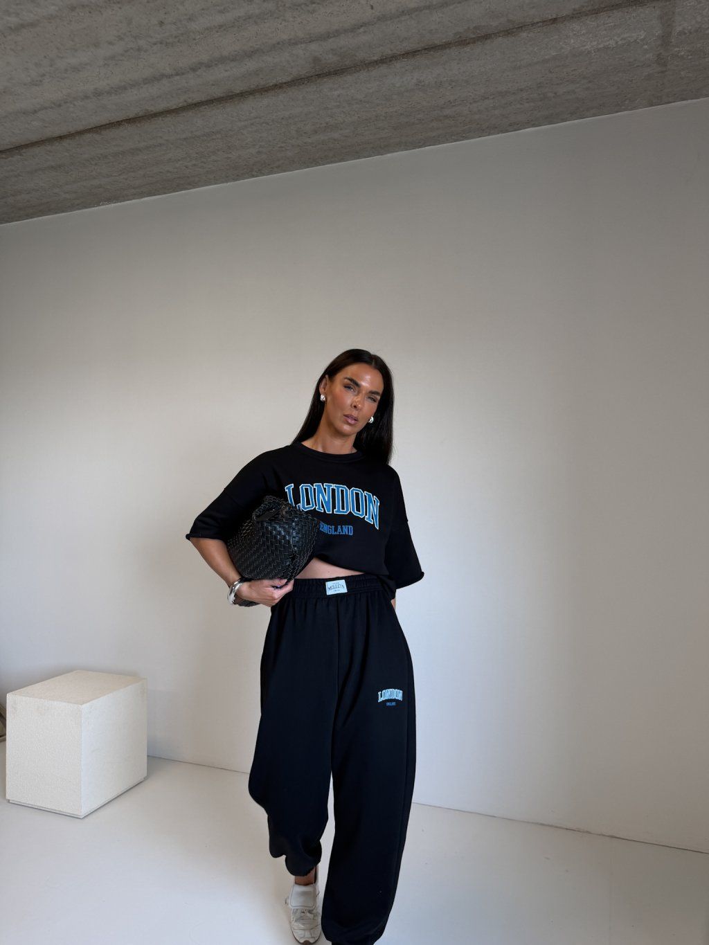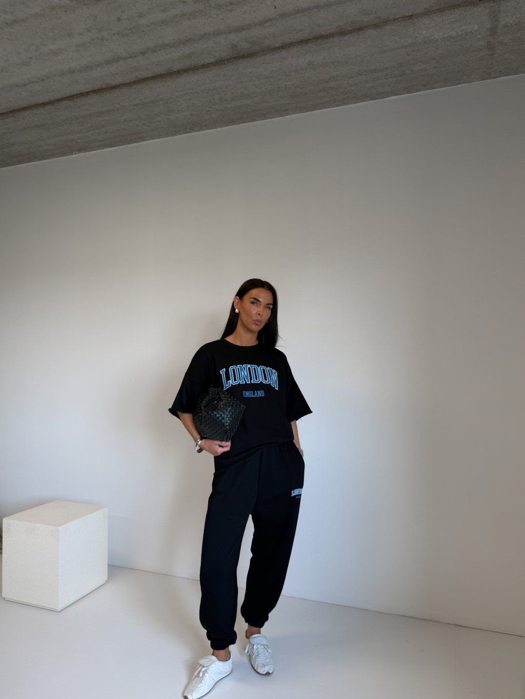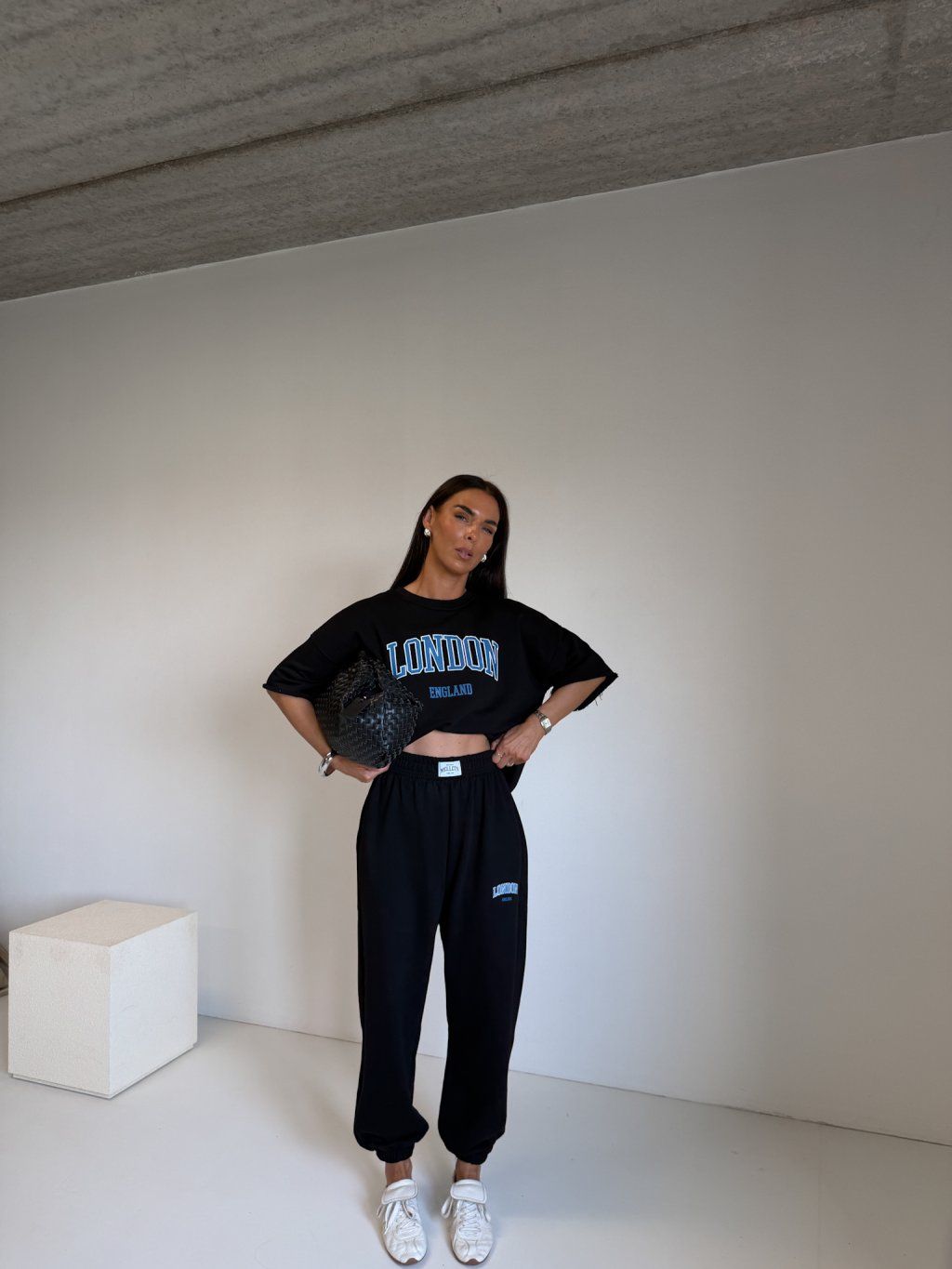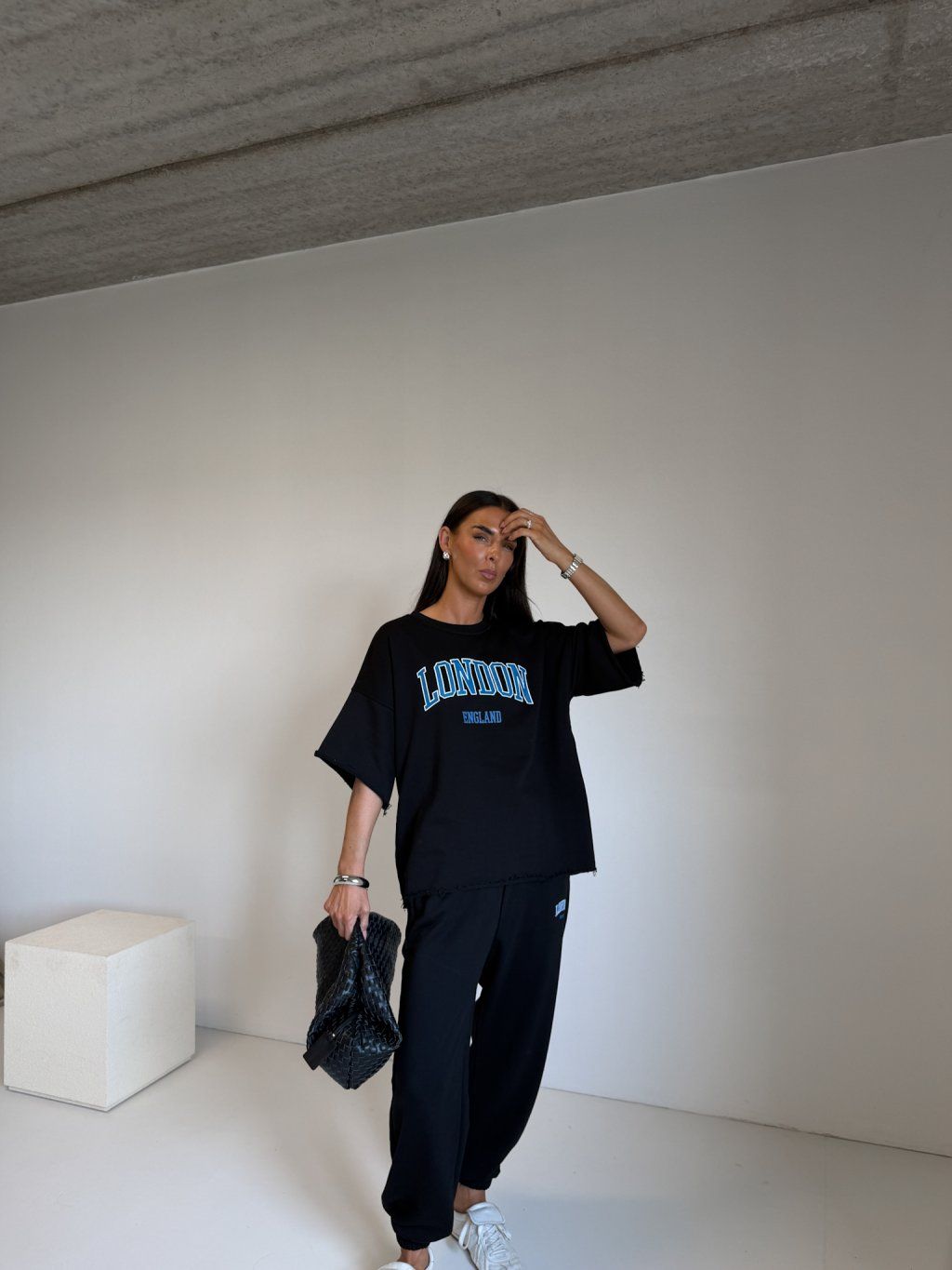 | Modelka měří 173 cm, váha 56 kg. Běžně nosí velikost S/M a oversized oblečení L. |