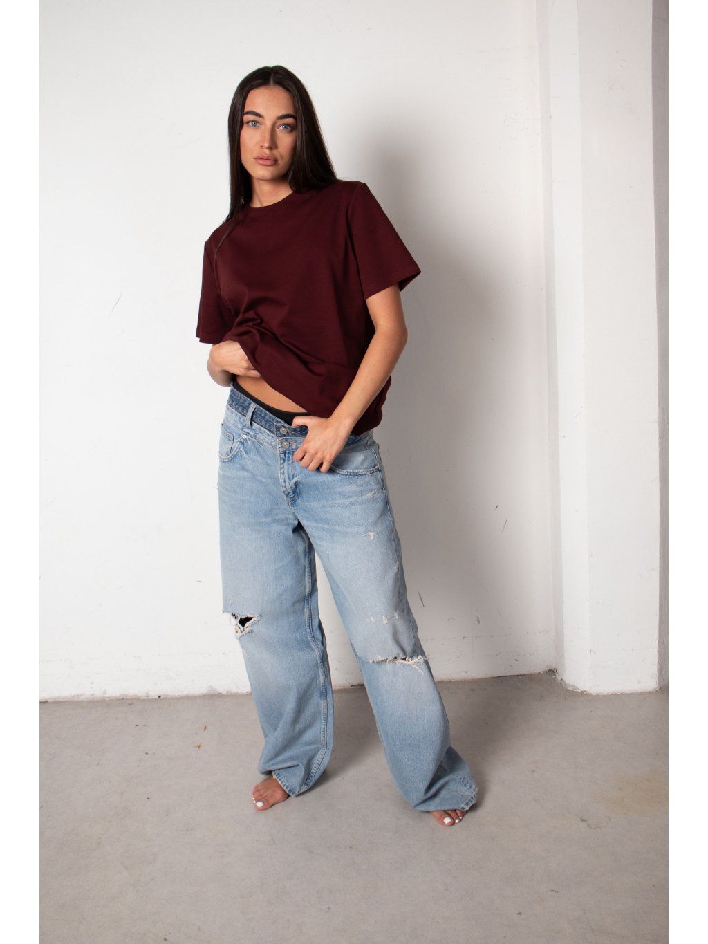 TRIČKO S ELASTANEM heavy cotton - oversized bordo