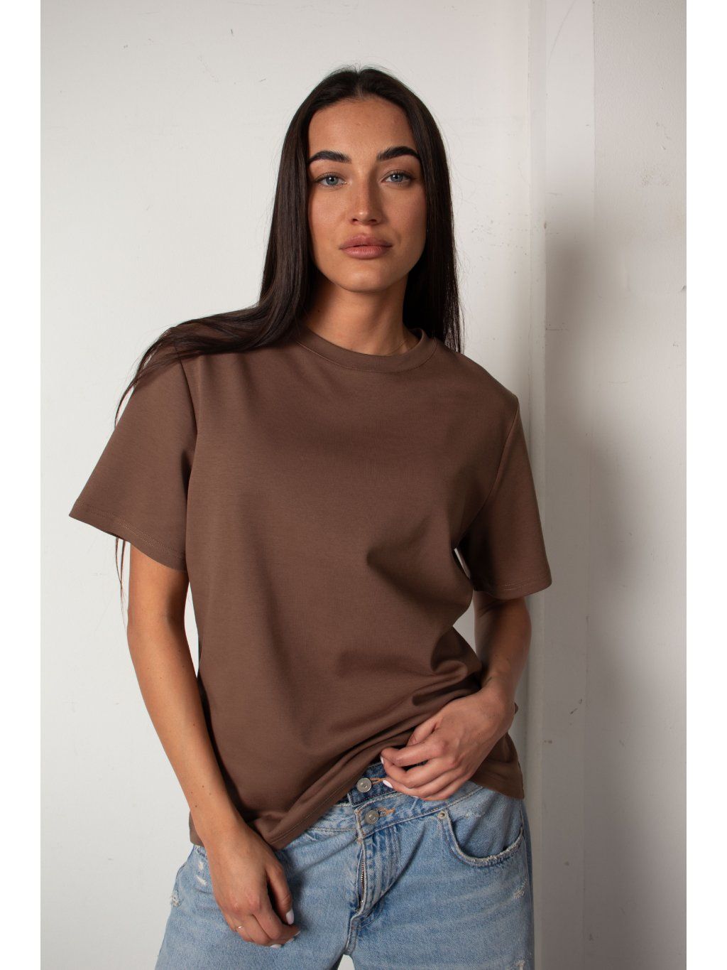 TRIČKO S ELASTANEM heavy cotton - oversized light brown
