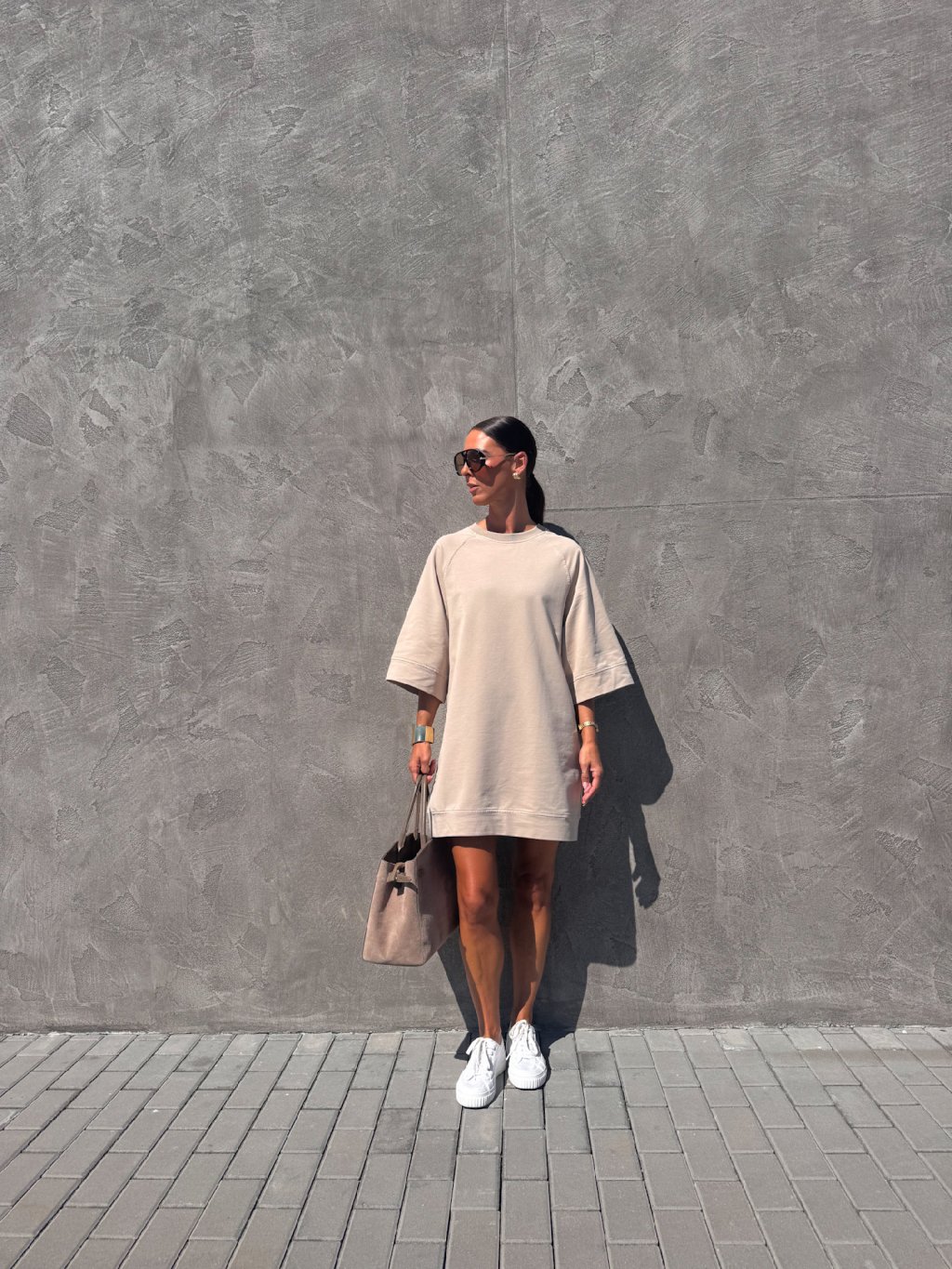 TRIČKOVÉ OVERSIZED ŠATY beige