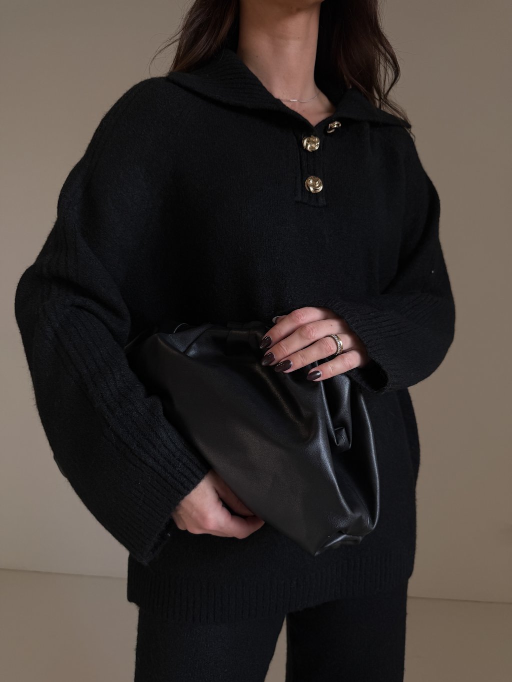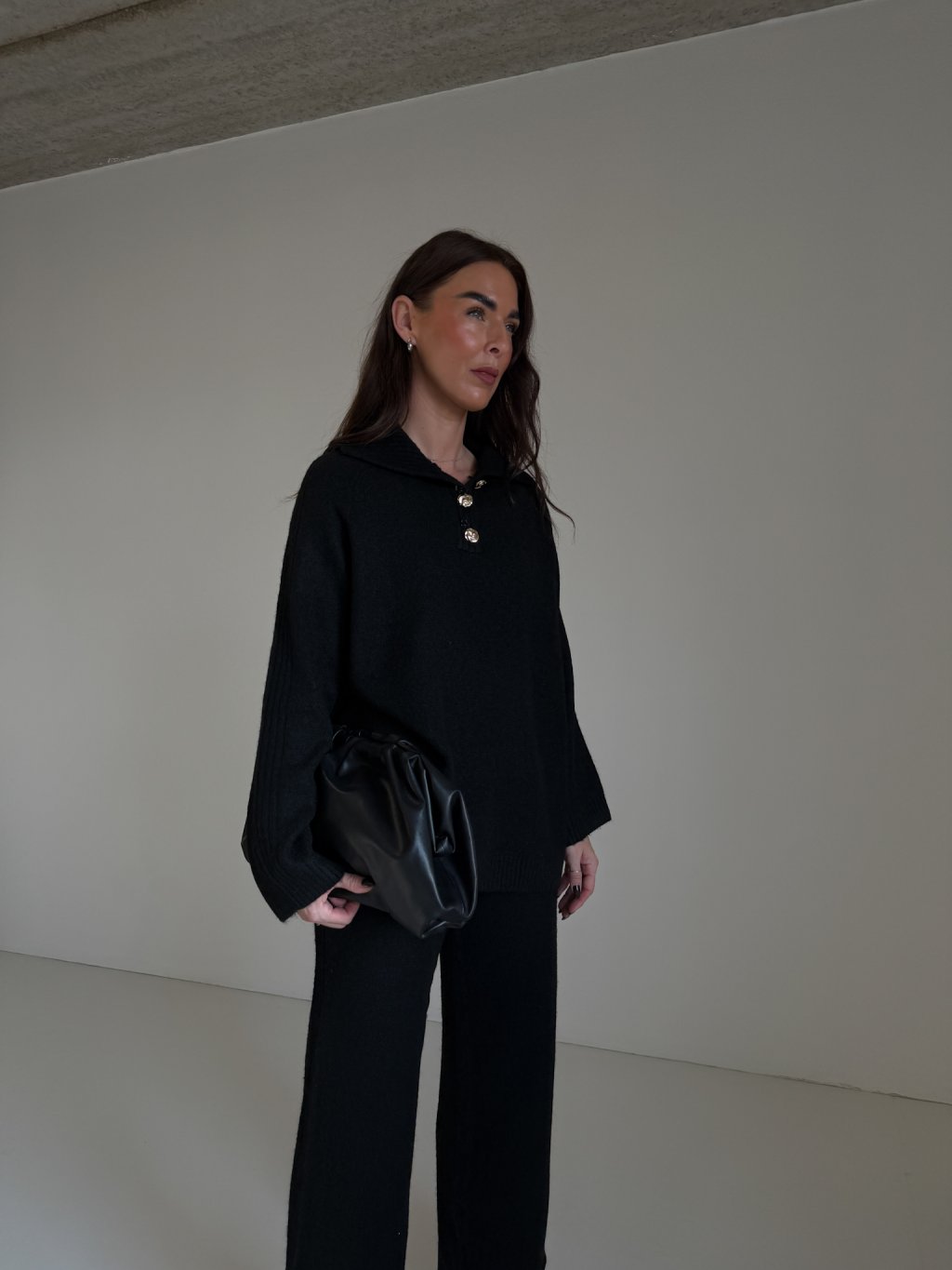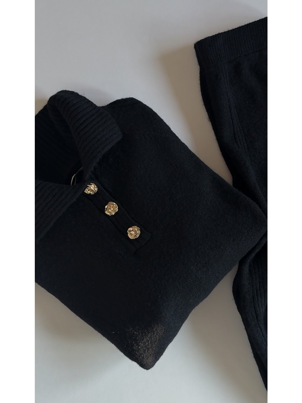 ÚPLETOVÝ KOMPLET SVETR + KALHOTY black