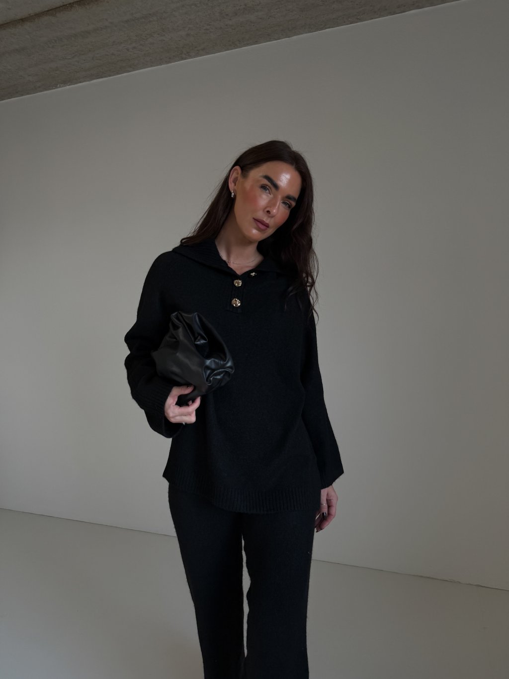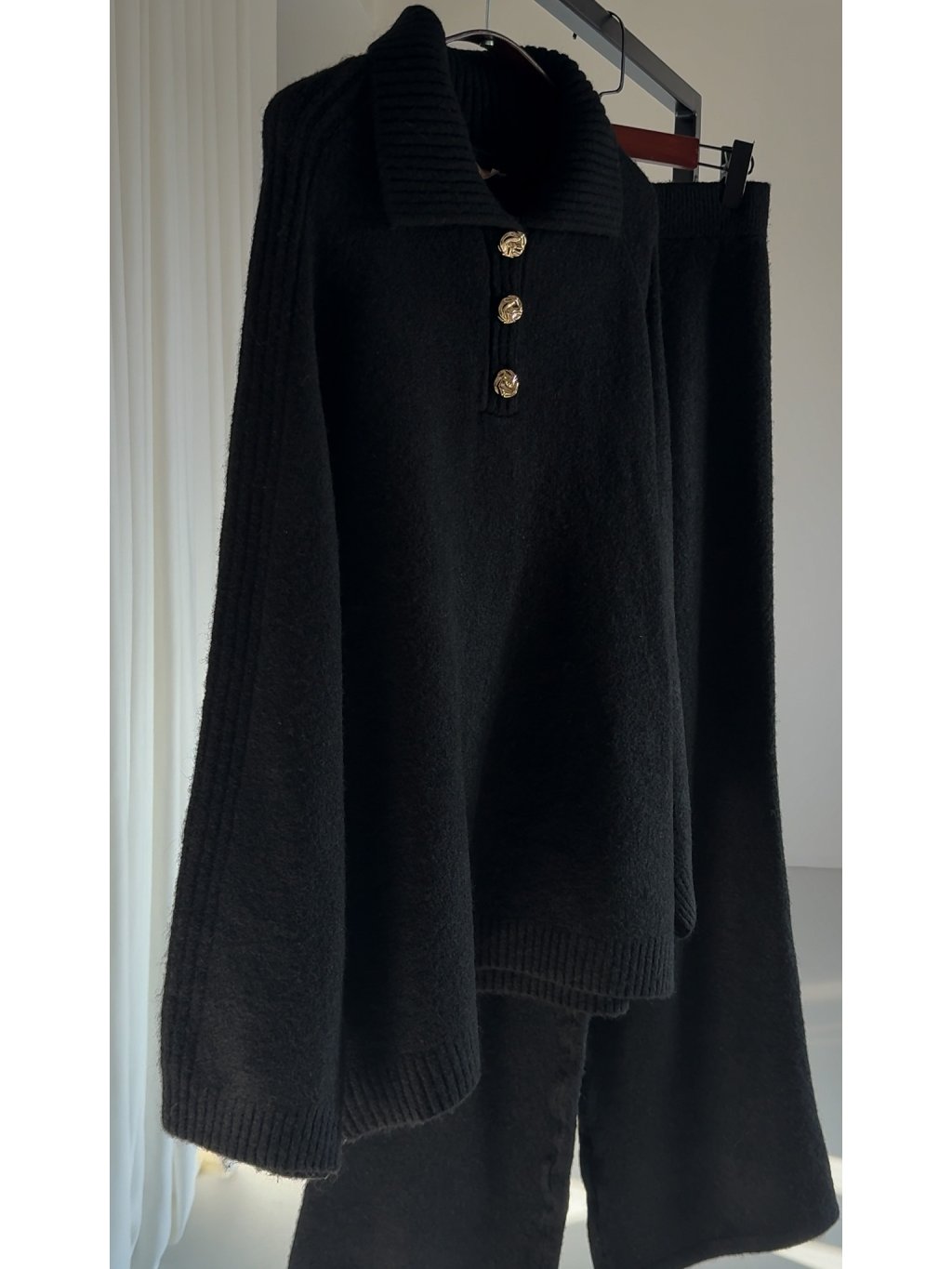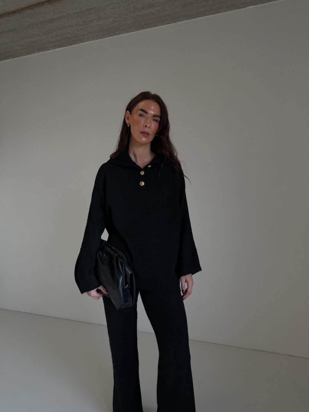 ÚPLETOVÝ KOMPLET SVETR + KALHOTY black