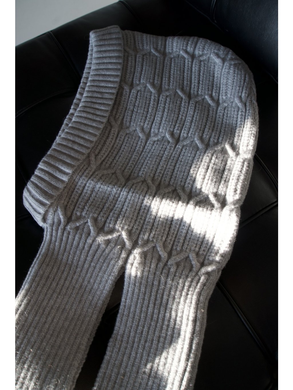 Pletená kukla se vzorem, prodloužený krk - na bocích rozparky. Příjemný materiál.