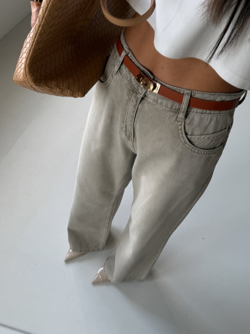 Džíny se širokými nohavicemi, vyšší pas, zapínání na zip a denim knoflík, v pase poutka, přední i zadní kapsy.