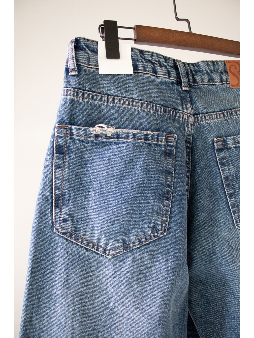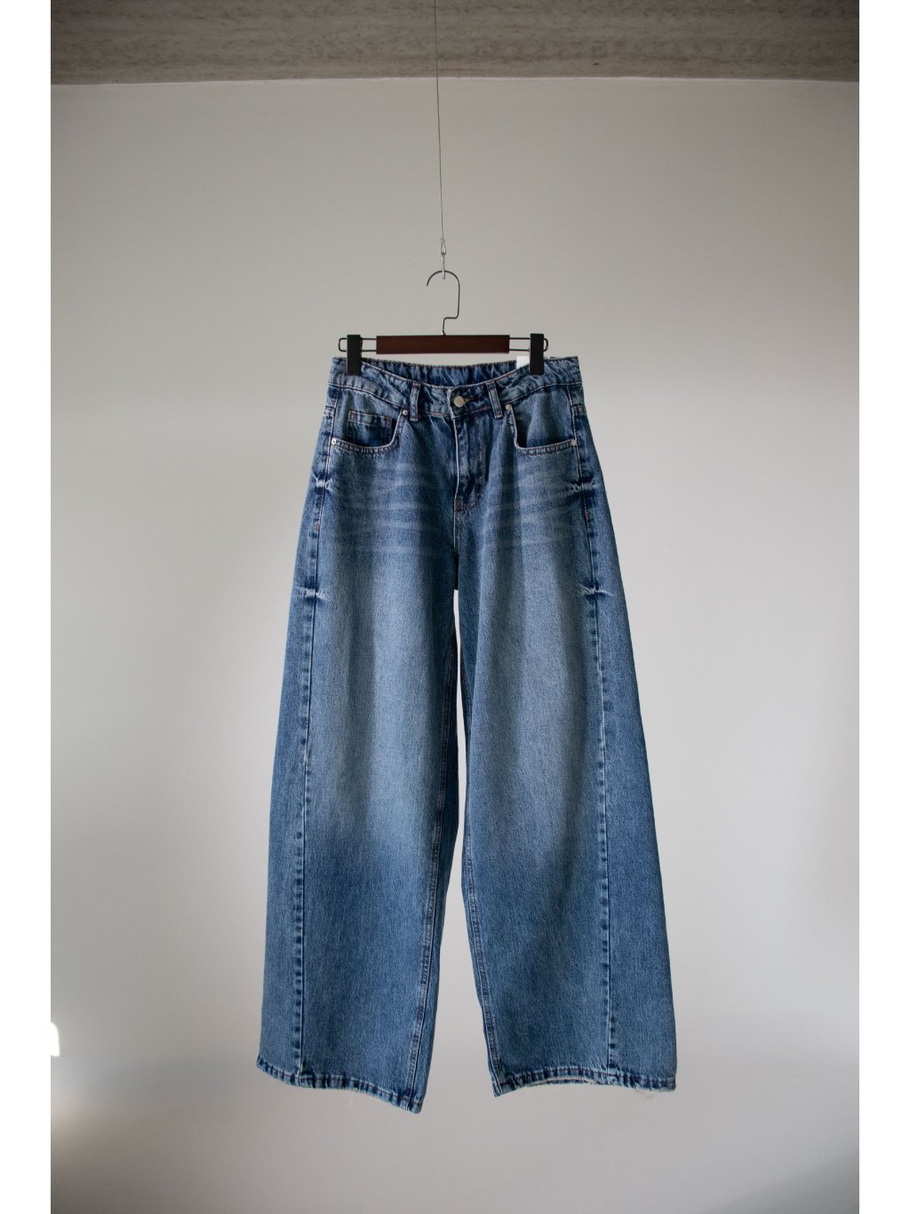 Džíny se širokými nohavicemi, balonový střih, zapínání na denim knoflík a zip ve stříbrné barvě, přední i zadní kapsy - kapsy mají otrhaný efekt, v pase poutka, šikmé prošití, šisování, spodek nohavic je také s trháním.
