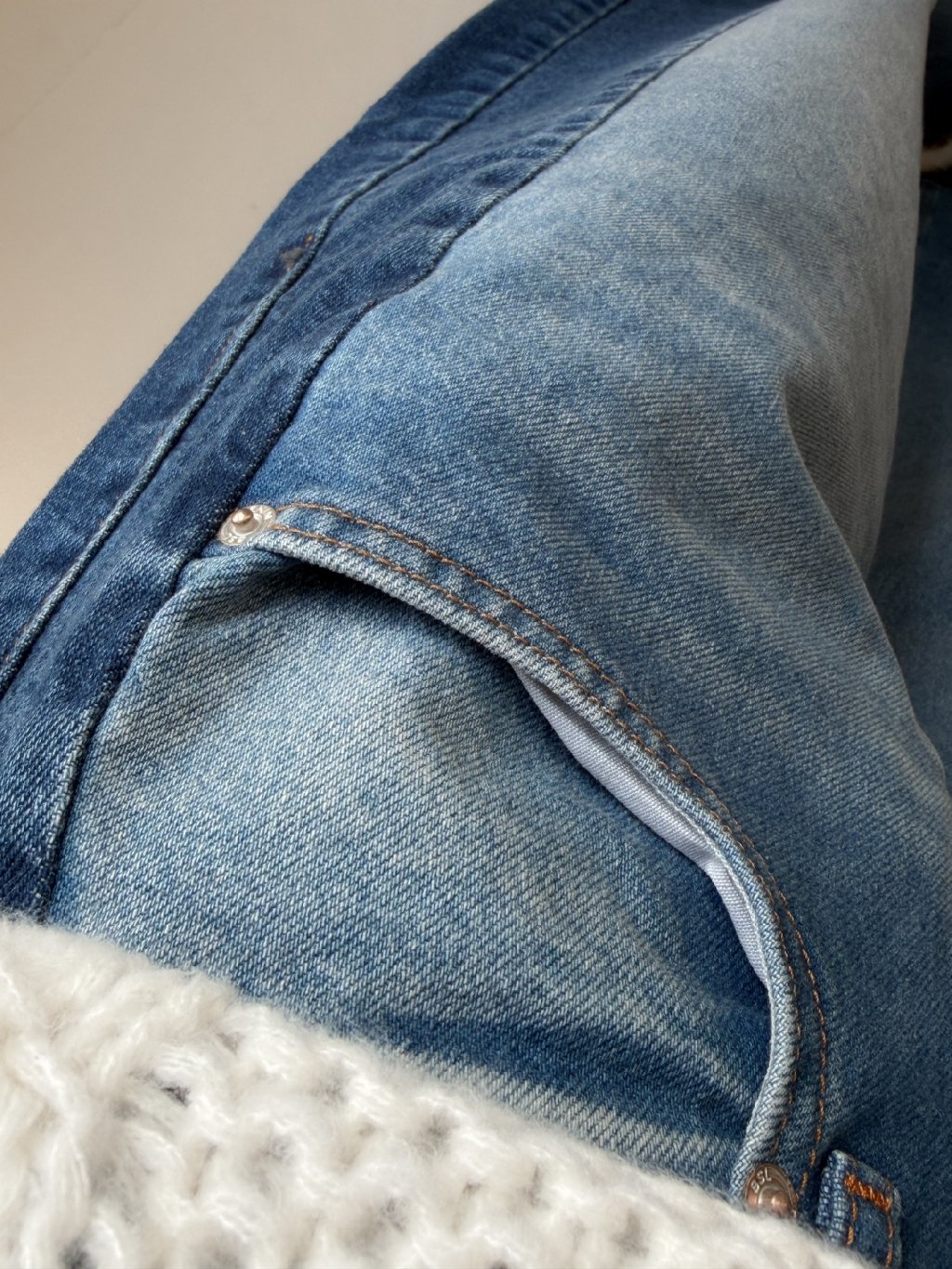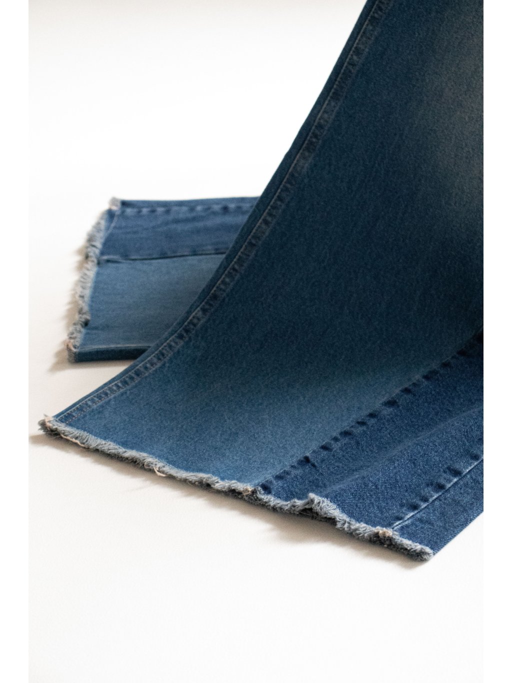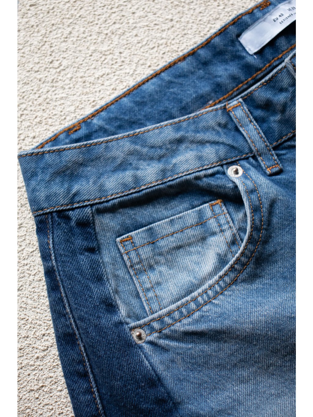 Dvoubarevné široké džíny, vnitřní strana světlá a vnější tmavá denim.