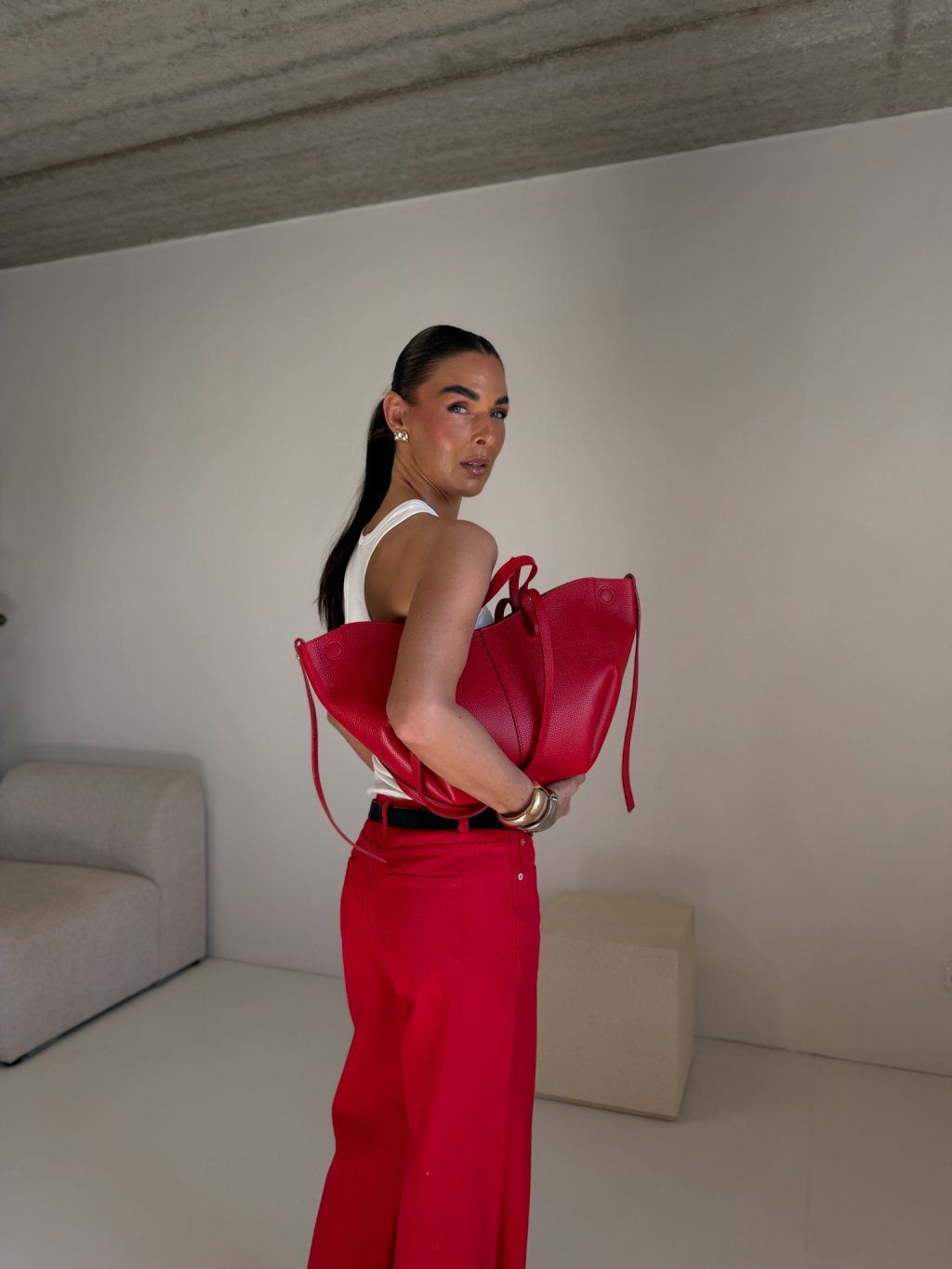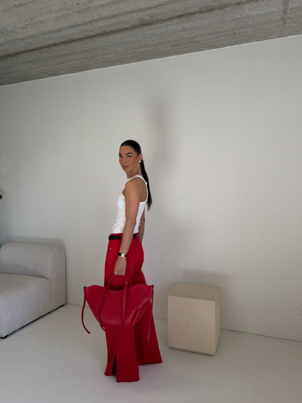 WIDE LEG DŽÍNY red