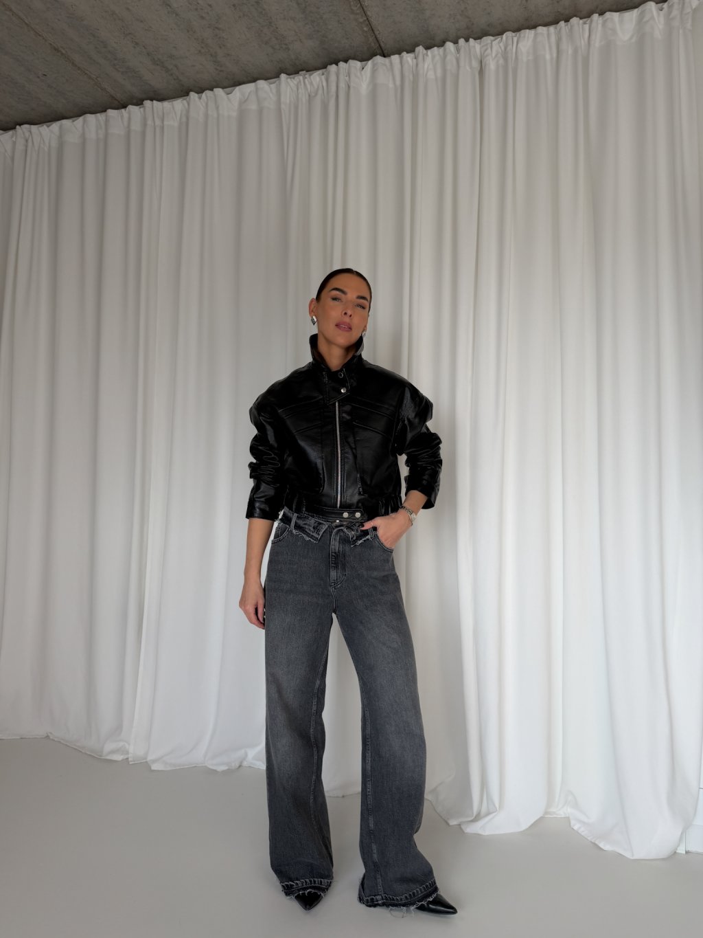 WIDE LEG DŽÍNY S OHNUTÝM PASEM grey