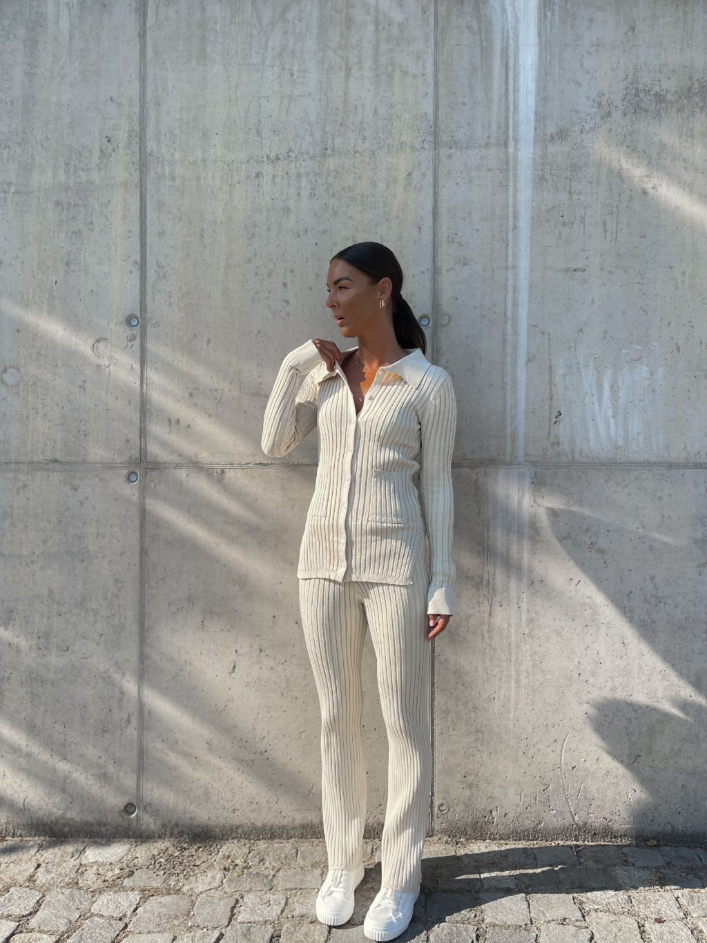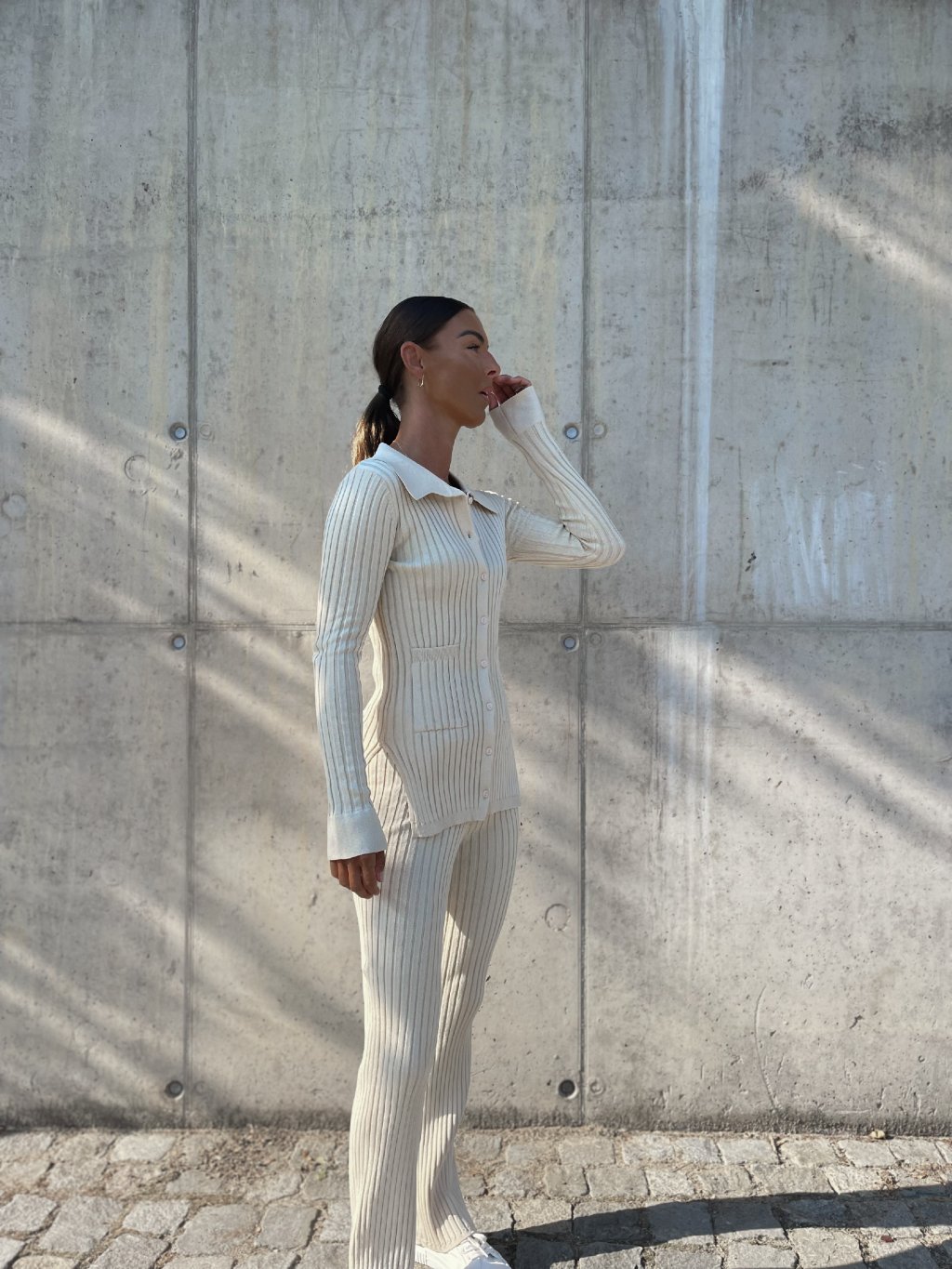 ŽEBROVANÝ PLETENINOVÝ KOMPLET cream