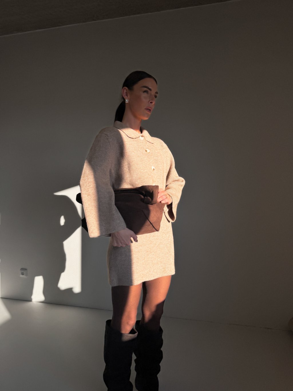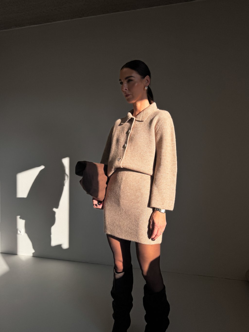 SET CARDIGAN S LÍMEČKEM + SUKNĚ beige
