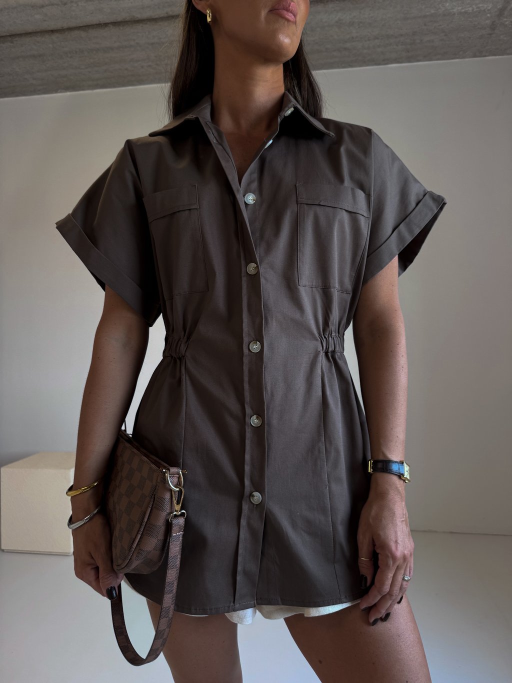 Cargo vesta, prodloužená délka, výrazné kapsy, propínání po celé délce, v pase na gumu, materiál mírně pruží.
