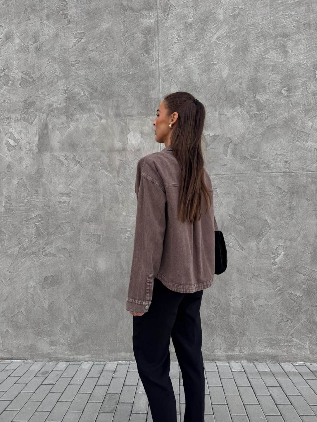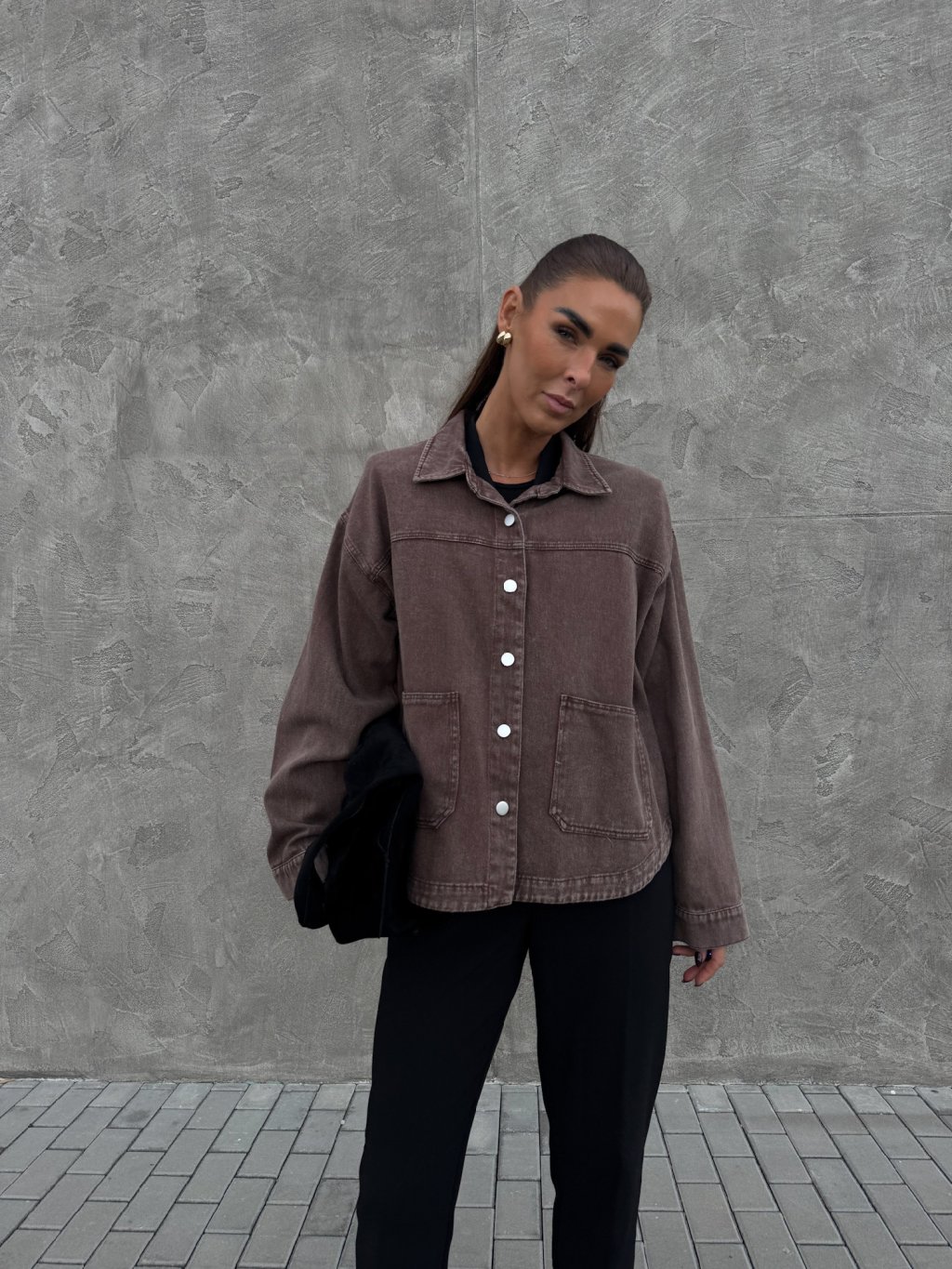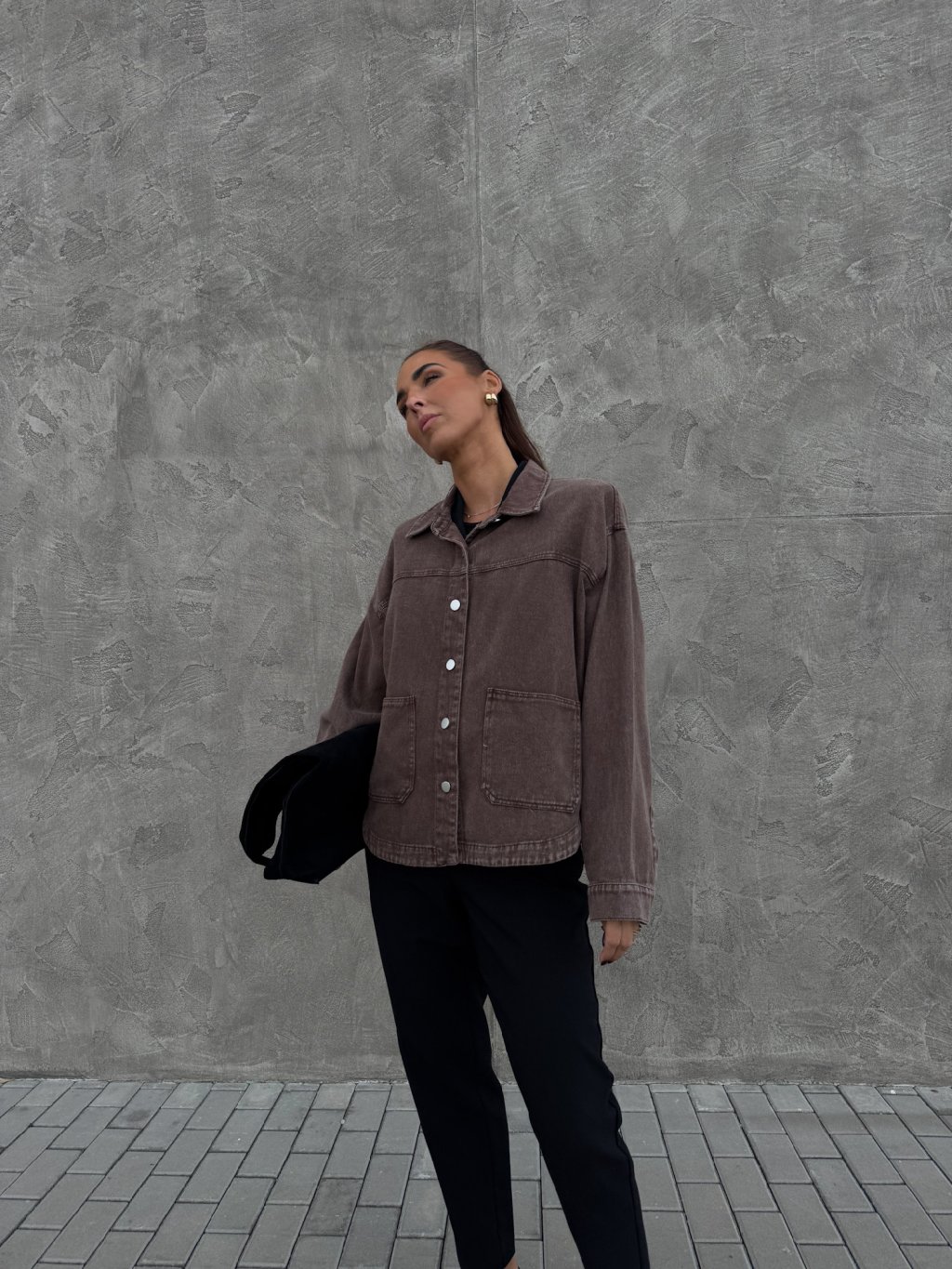 Košile s dlouhým rukávem, širší střih, vpředu velké kapsy, zapínání na denim knoflík ve stříbrné barvě. Na zádech detail s rozparkem.